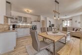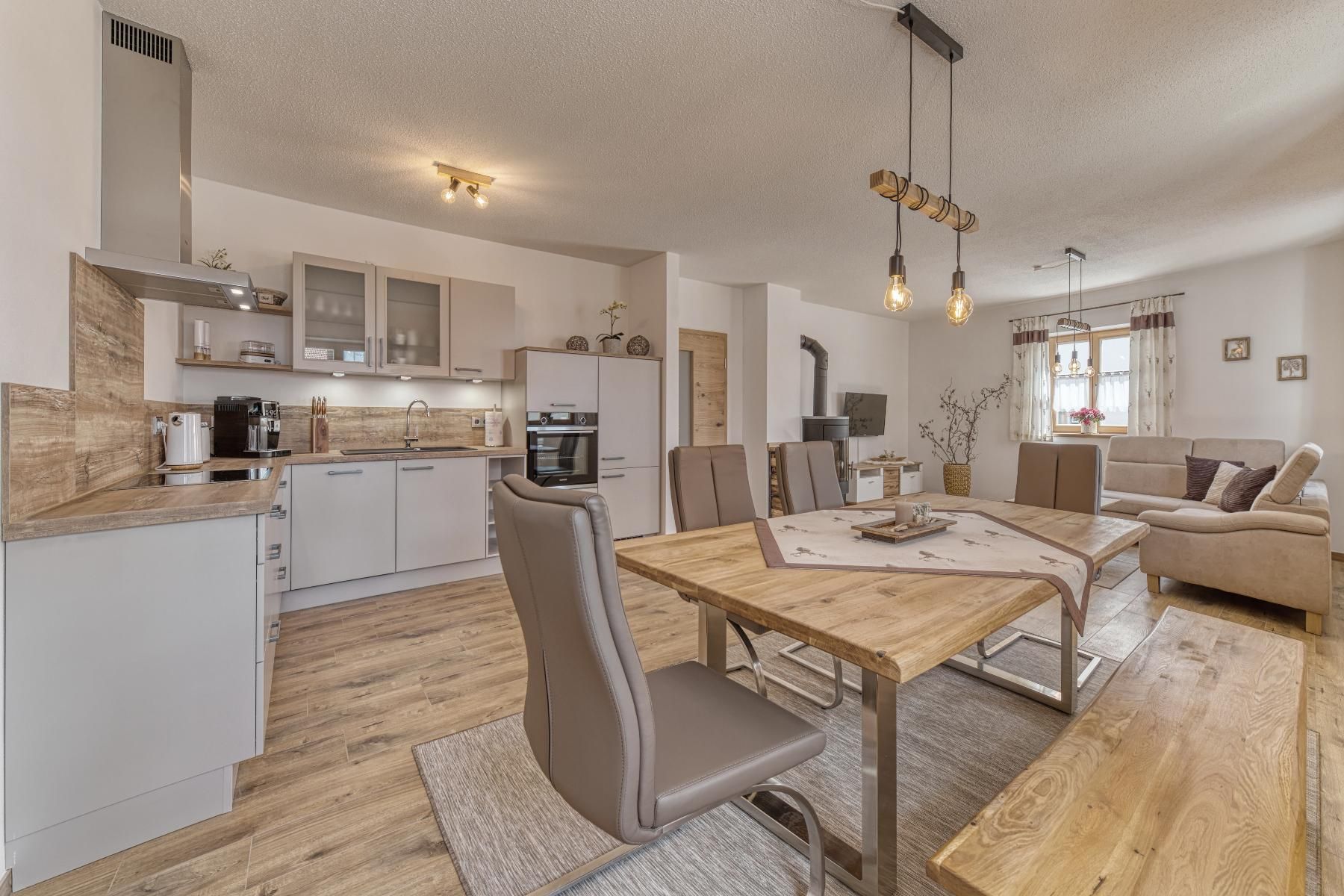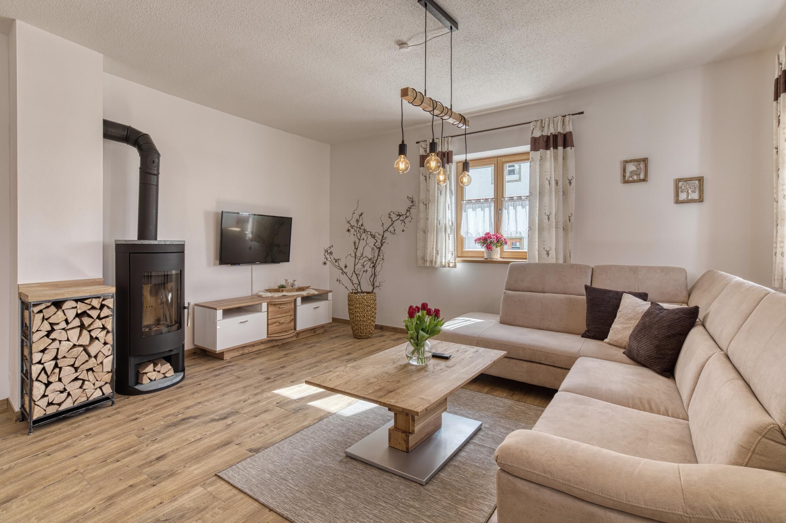 Essbereich mit Kaminofen und Flachbild-TV verspricht entspannte Abende
