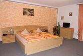 Wohn-Schlafraum mit feststehenden Betten, Bettwäsche, SAT-TV und Telefon