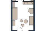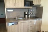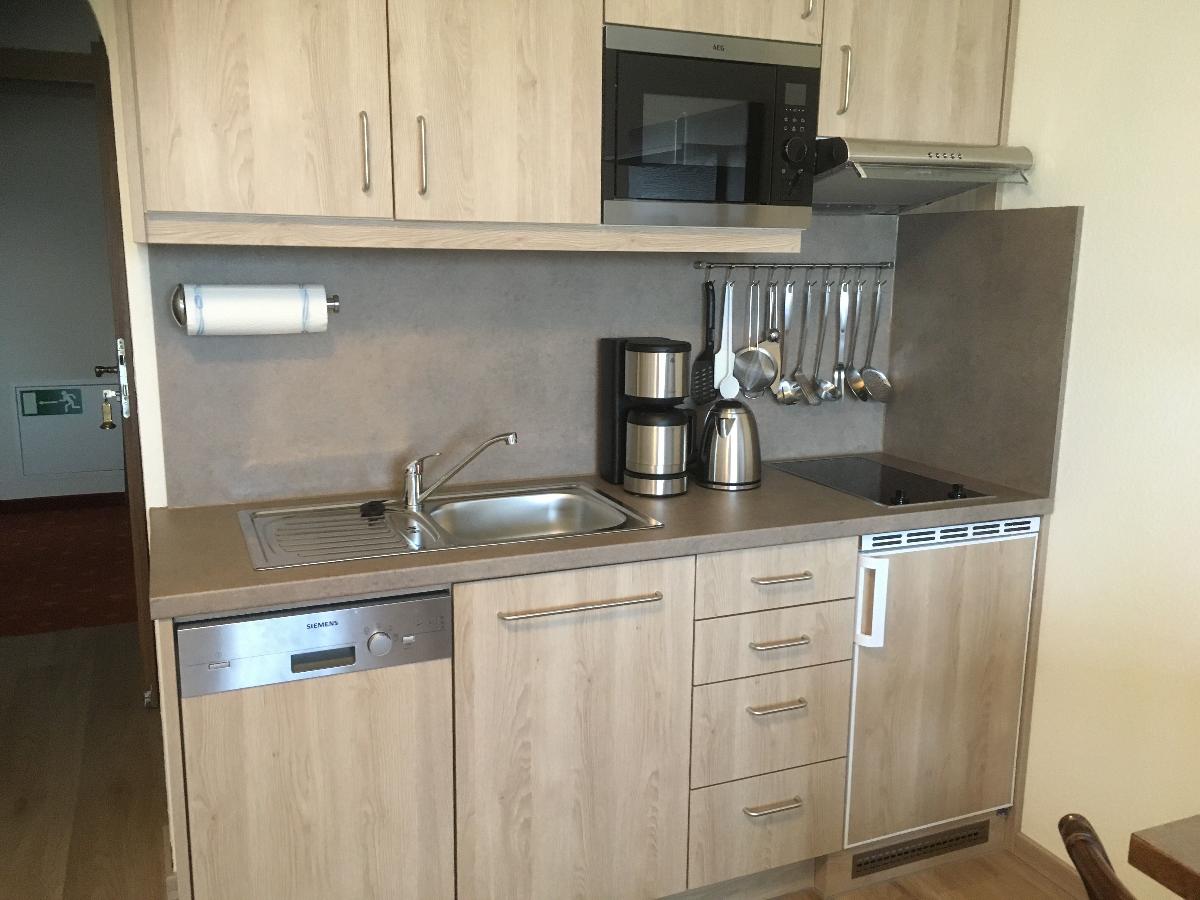 Im 1. OG mit 1 Balkon, Einzelbett, WC mit Dusche, Couchgarnitur, Esstisch und moderner Küchenzeile mit Spülmaschine mit ca. 28 qm Wohnfläche für 1 Person.