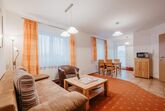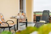 eingerichtetes Zweiraumappartement mit großem Balkon, in dem auch