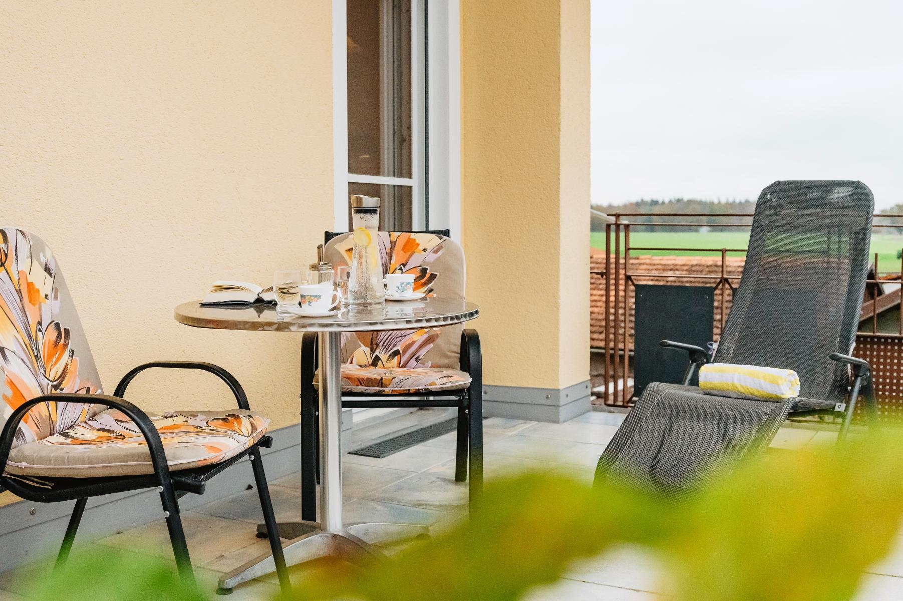 Unsere Ferienwohnungen sind ausgestattet mit Geschirr, Mikrowelle bzw. Grillofen, Bettwäsche, Handtüchern. Balkonmöbel sind in unserem Hause Standard.