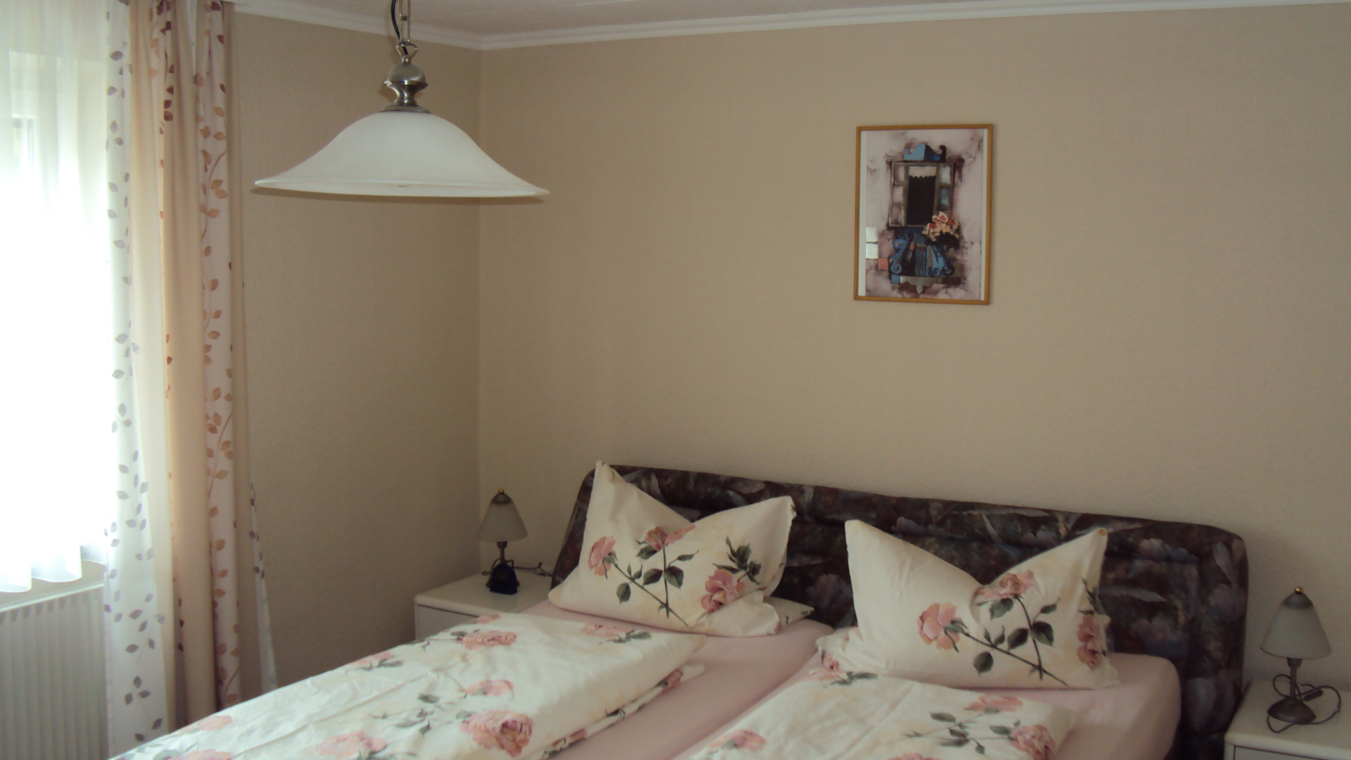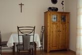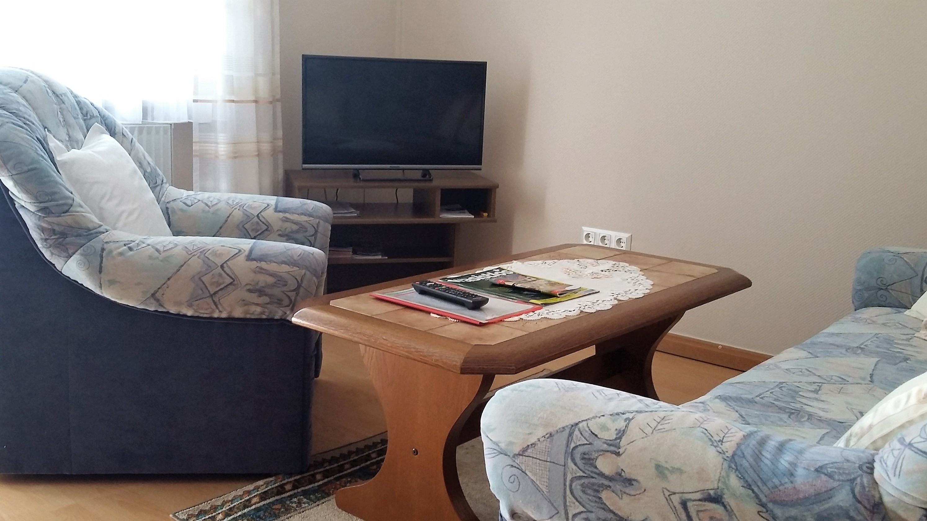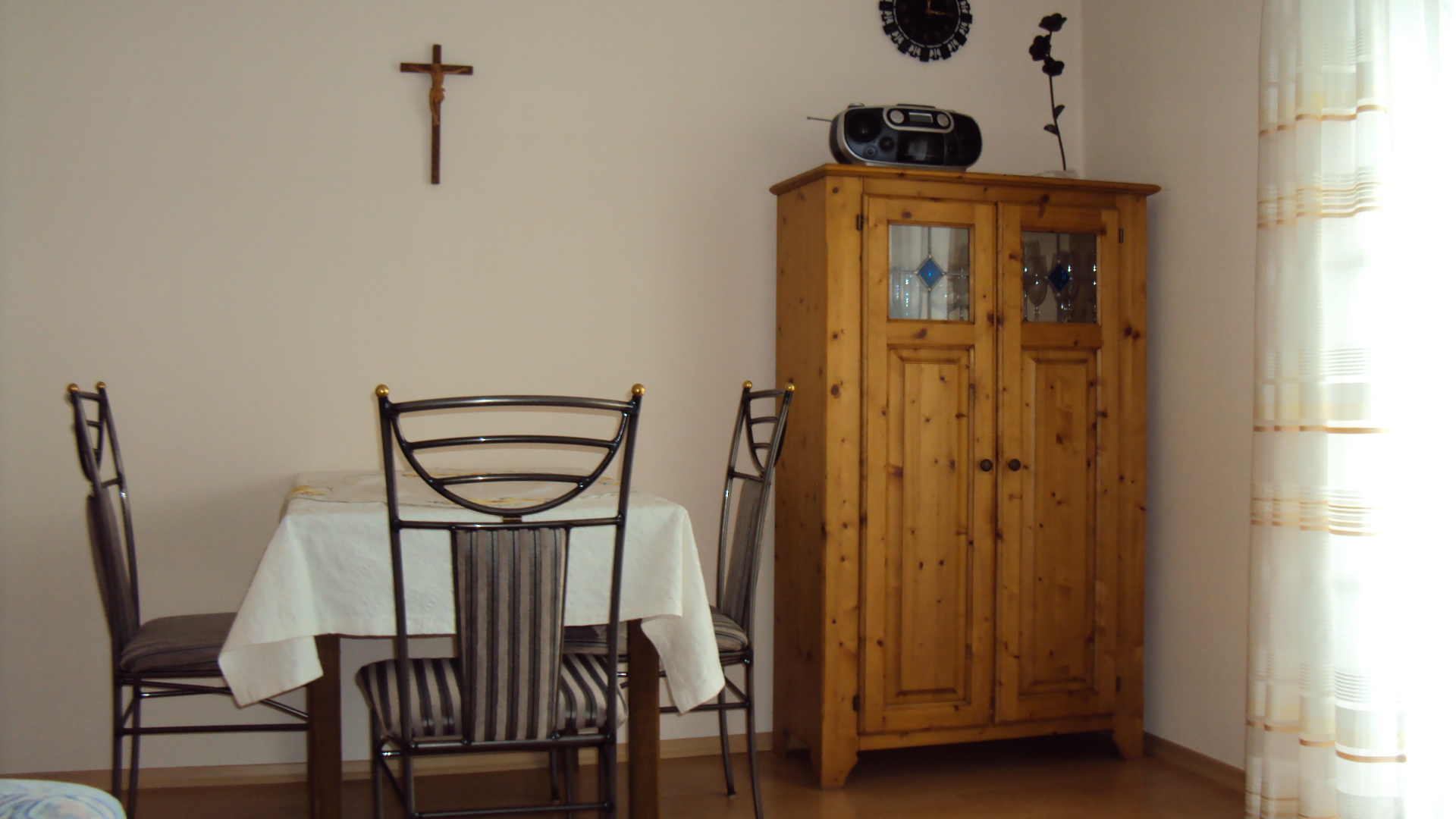 Küche, Wohnzimmer, Esszimmer, Schlafzimmer, Bad mit Dusche und WC, Balkon, Sat-TV und Radio.