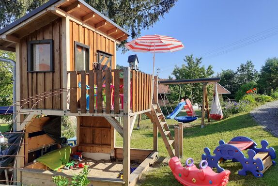 * Garten mit Spielplatz und Liegewiese sowie Liegestühle
