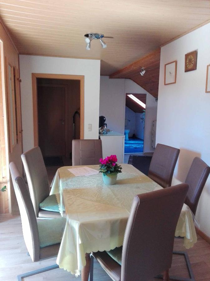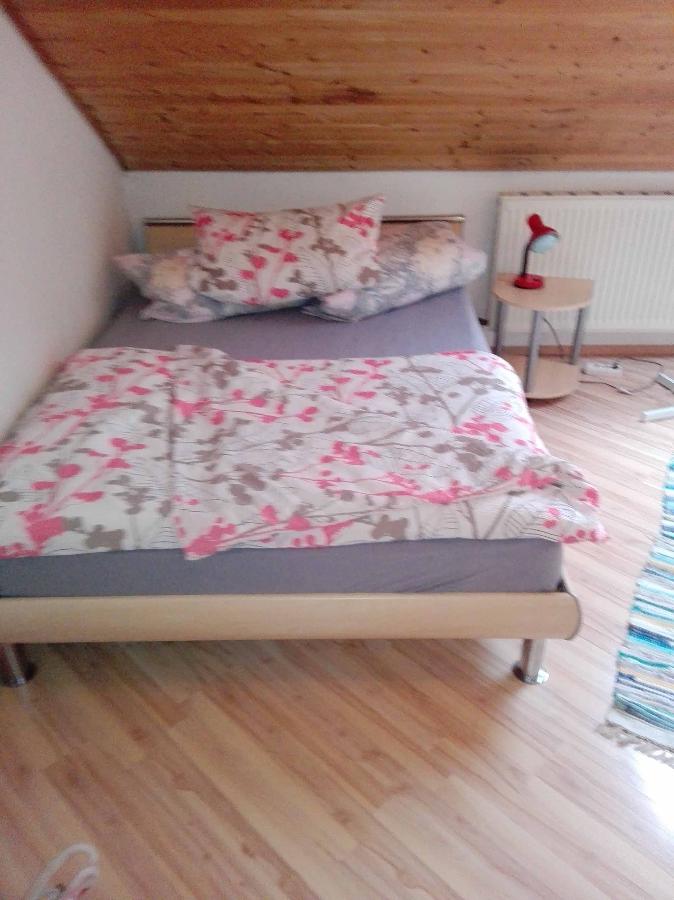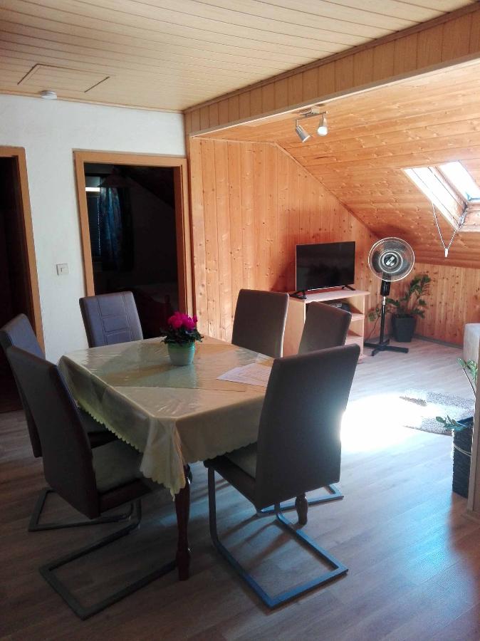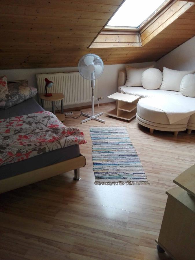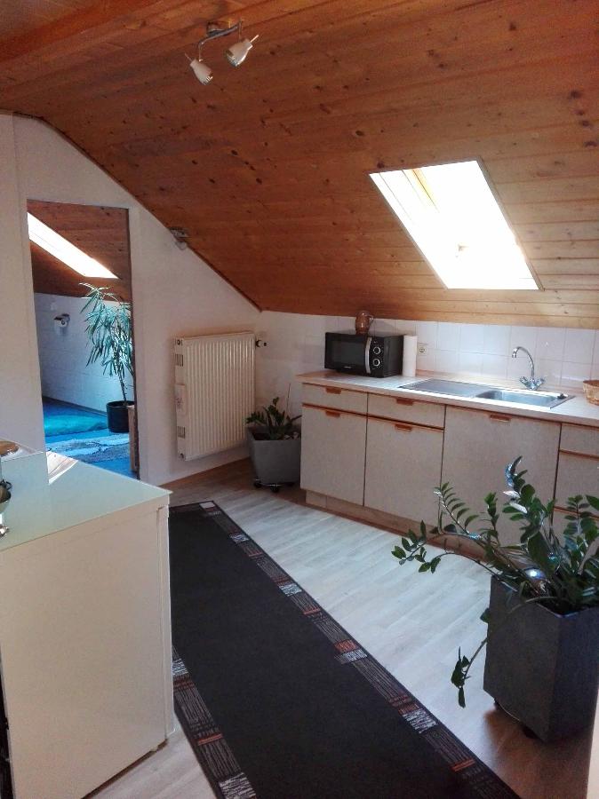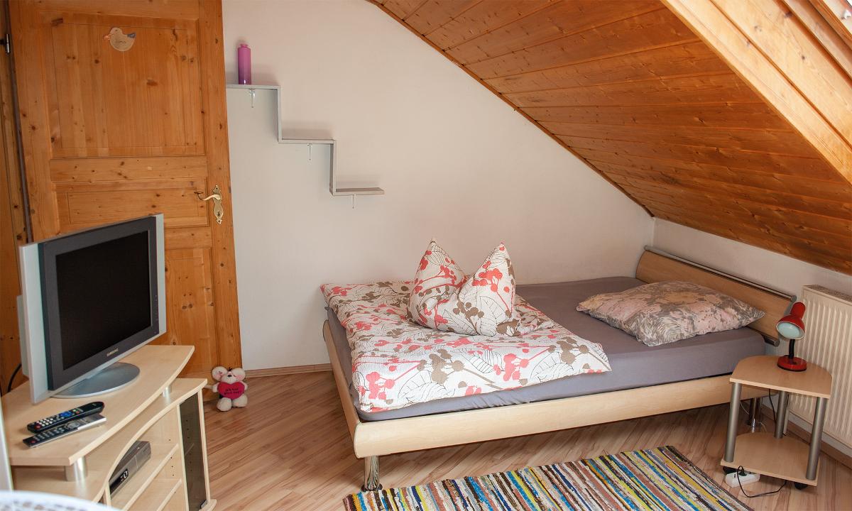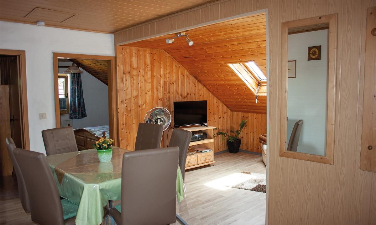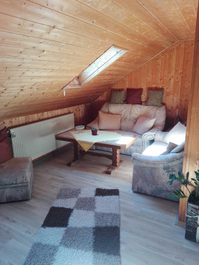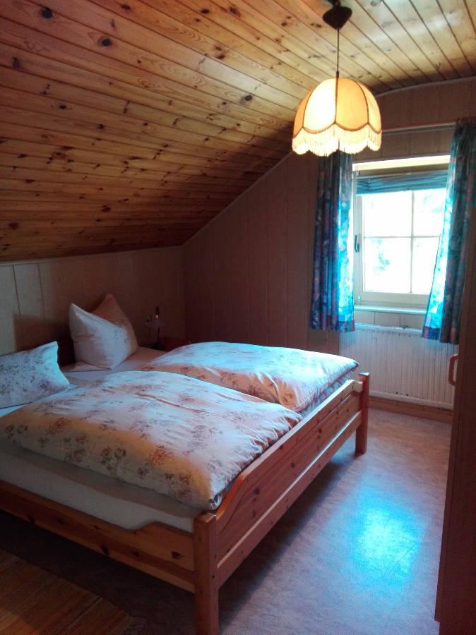 Die Ferienwohnung bietet ca. 65 m² (Mansarde) Wohnfläche bestehend aus einen Schlafraum, Wohnzimmer, Küche und Dusche/WC. Die Wohnung ist um einen weiteren Schlafraum und Dusche mit Toilette für zwei Personen erweiterbar (85 m²). In der Wohnung finden Sie auch einen Fernseher vor. Die Ferienwohnung verfügt außerdem über einen Garten und eine Grillmöglichkeit.