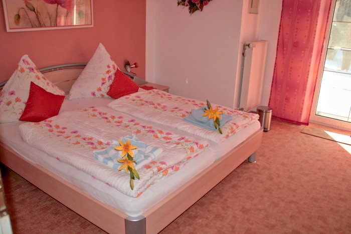tägl. Brötchenservice oder mit Frühstück, Fahrrad- und Schlauchbootverleih, Sat-TV (Flat-Screen), Du/WC, Wintergarten als Frühstücks- bzw. Aufenthaltsraum; Exklusive FeWo mit SZ, WZ mit Schlafcouch, Essküche, Balkon; App: Panoramafenster, Küchenzeile, Sitzecke, Doppelbett; 1 MZ mit Balkon, 1 DZ, 1 DZ mit Terrasse. Ganzjährig geöffnet.