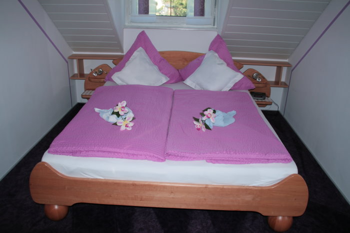Das kleine ruhige Doppelzimmer mit Dusche und WC ist im 1. Stock. Sat TV mit DVD Player und Stereo Anlage sowie kostenloses WLAN sind natürlich ebenfalls vorhanden. Im großen Garten und auf den beiden Terrassen stehen genügend Möglichkeiten zum Relaxen zur Verfügung. Im Wintergarten können sie das Frühstück einnehmen und dort auch gemütliche Abende verbringen.