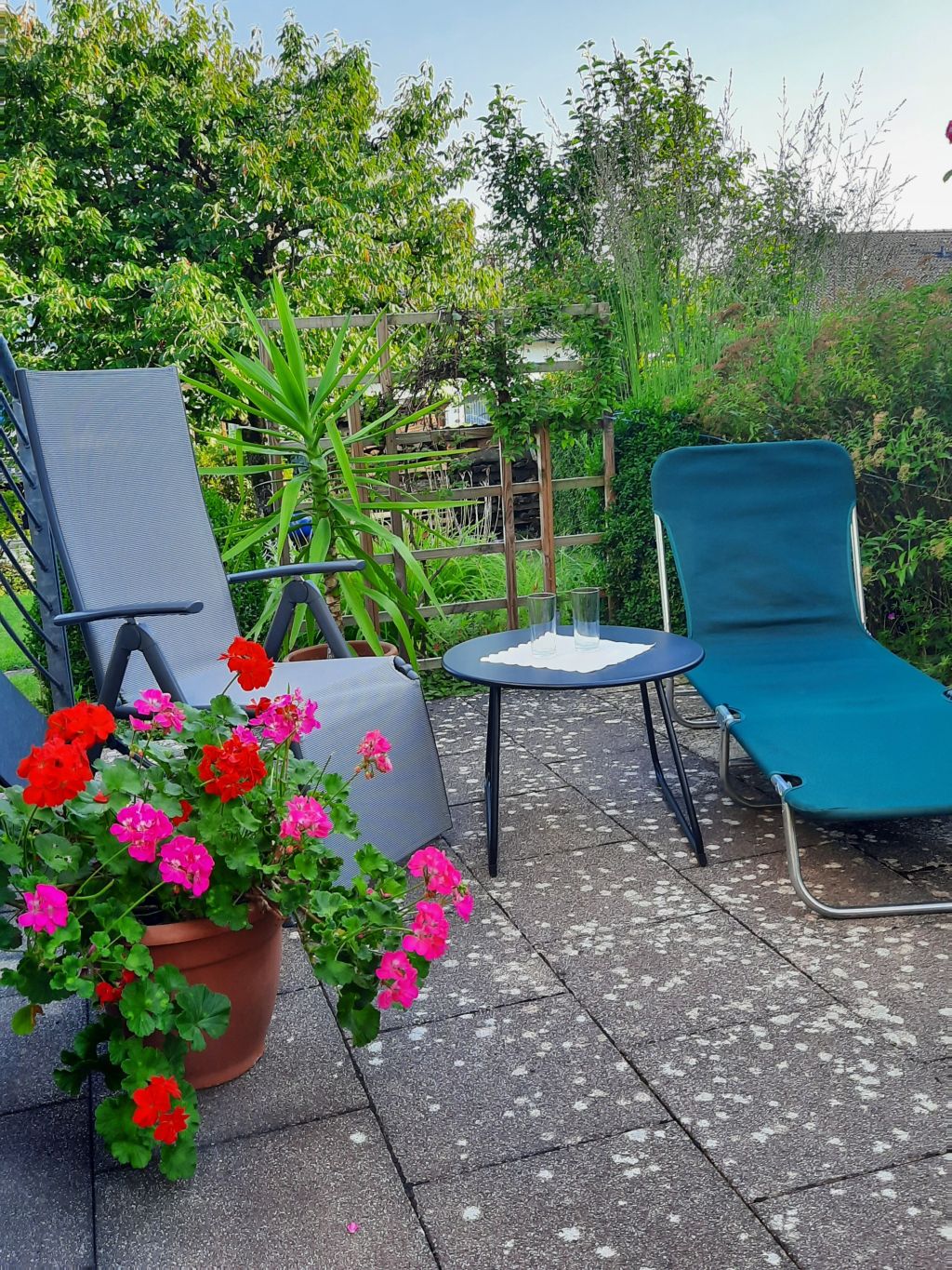 Abgeschlossene, gut ausgestattete Fewo in ruhiger Südlage in einer Wohnsiedlung, separater Eingang, Wohn-/Schlafraum mit TV, gut ausgestattete Küche mit Essplatz, zusätzlicher Schlafraum mit 1 Bett, Kinderbett vorhanden. Du/WC mit Fenster, möblierte Terrasse, großer Garten, kinderfreundlich, W-LAN, Parkplatz auf dem Grundstück, Garage für Fahrräder.
