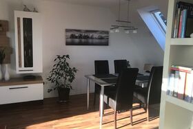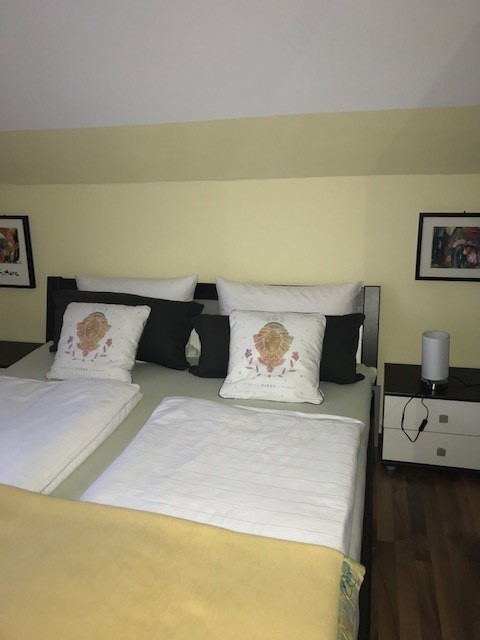 Die exklusiv ausgestattete, schöne Ferienwohnung in ruhiger und sonniger Lage bietet einen schönen Fernblick. Auf einer Fläche von 76m² bietet die Wohnung Platz für bis zu 4 Personen. Die zwei Schlafzimmer sind jeweils mit einem Doppelbett ausgestattet. Im großen Wohnzimmer befindet sich ein Essplatz, Sat-TV, 55 Zoll Fernseher, Radio und W-lane. Die voll ausgestattete Küche mit Waschmaschine, Spülmaschine, Backofen, Kühlschrank mit Eisfach und Kaffeemaschine, Eierkocher und elektrische Brotschneidemaschine lässt keine Wünsche offen. Das Badezimmer mit Dusche, Handtuchtrockner und WC rundet das Gesamtbild ab. In der eigene Gartenecke mitverschiedenen Gartenmöbeln und Gartenschirm, Grill sowie Liegewiese können Sie entspannte Stunden verbringen. Es handelt sich um eine Nichtraucherwohnung. Haustiere sind nicht erlaubt. Parkplätze befinden sich direkt vor dem Haus. Ein großes Gartenhaus mit Steckdosen für mehrere E-Biks und sonstige Räder ist vorhanden.