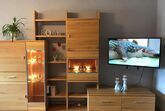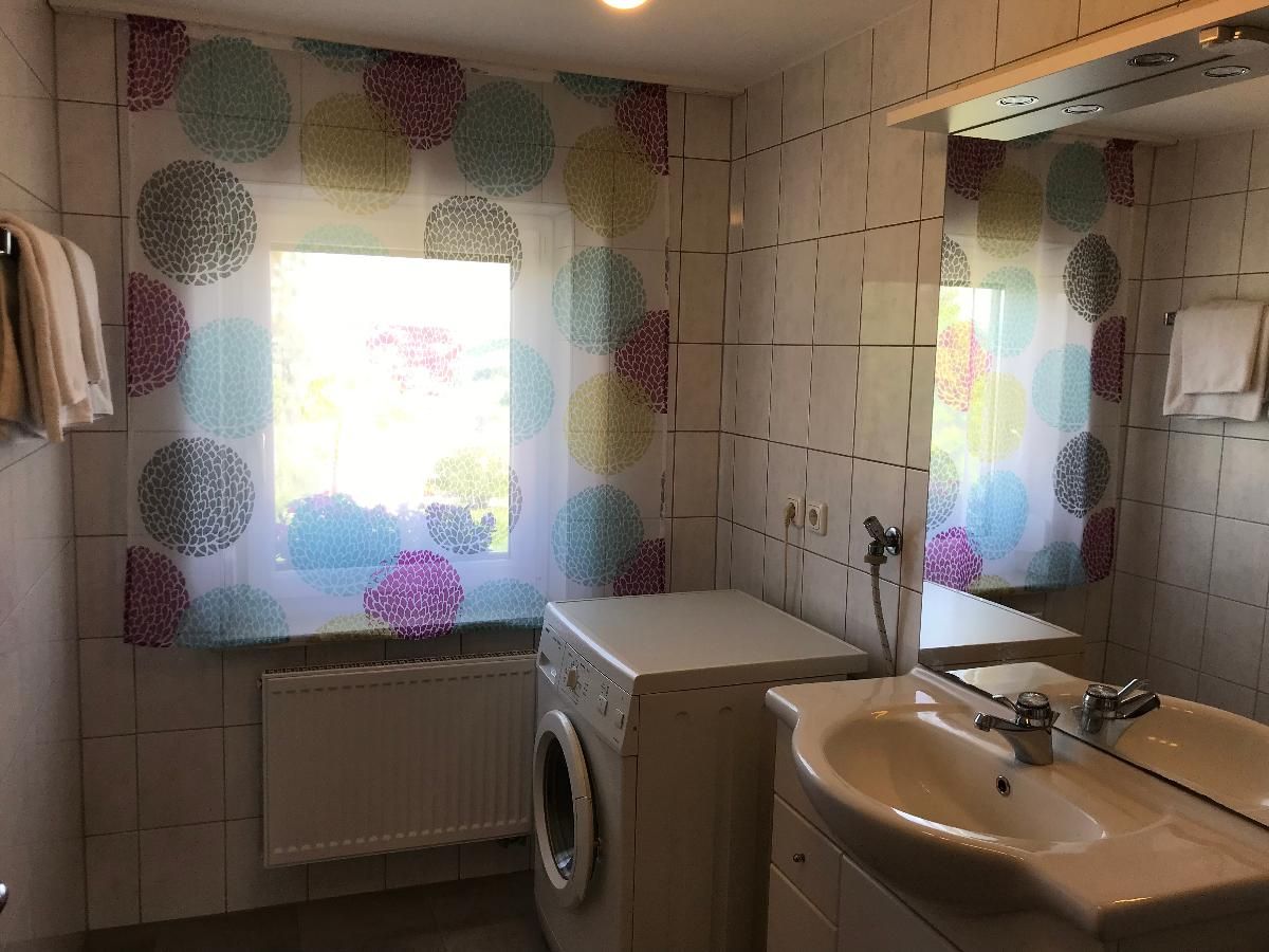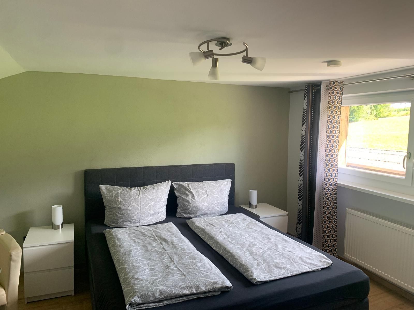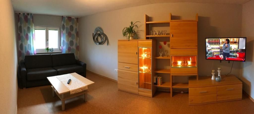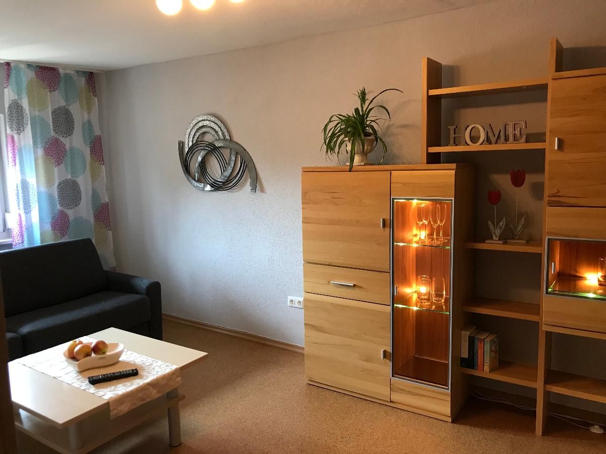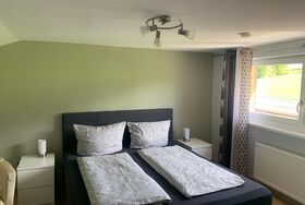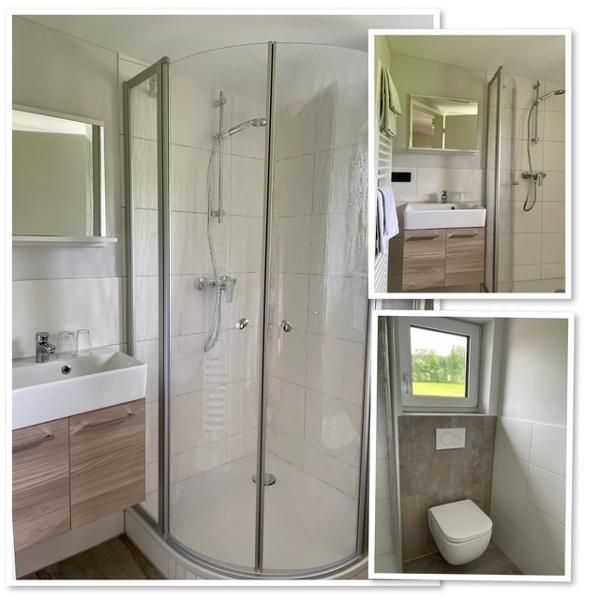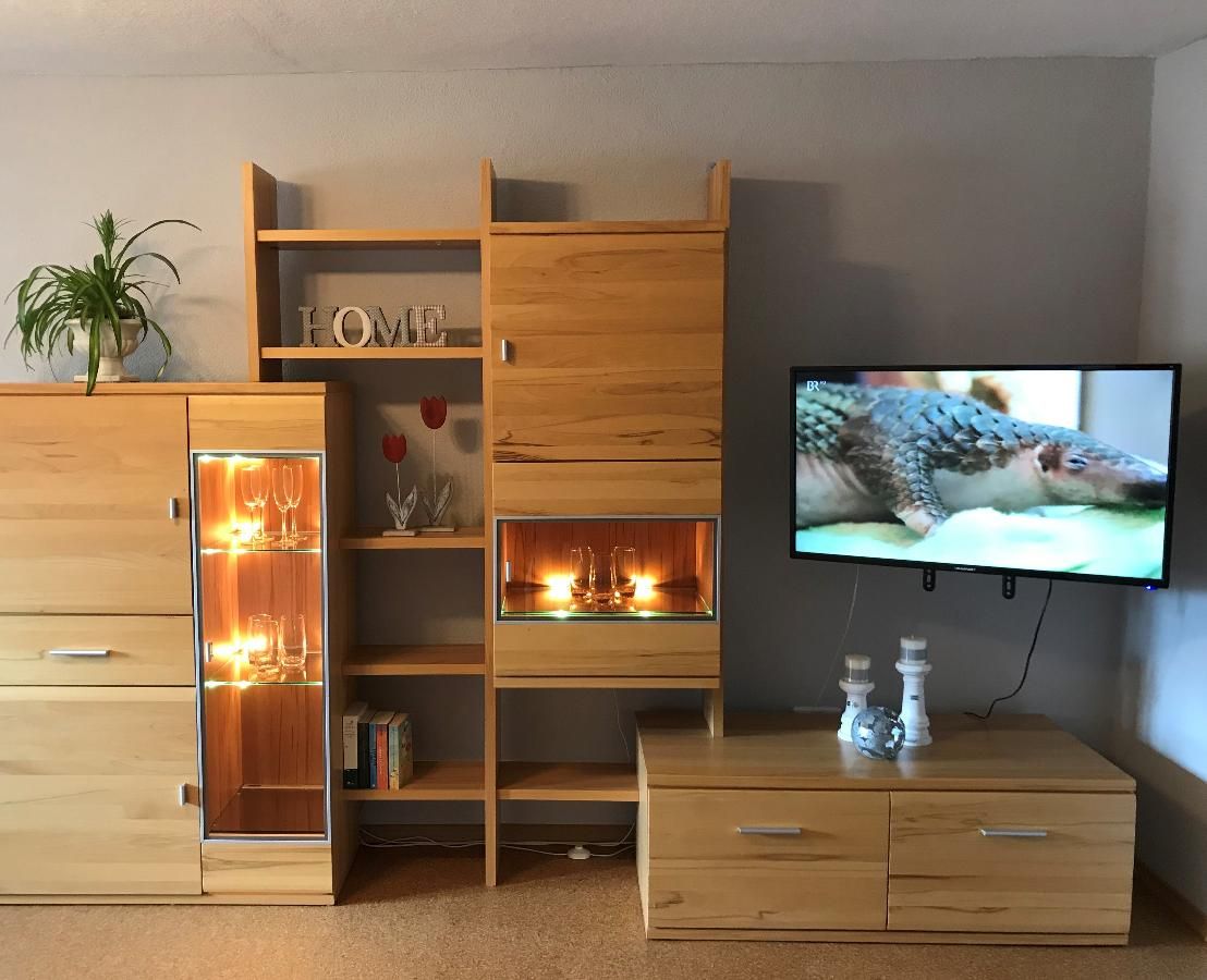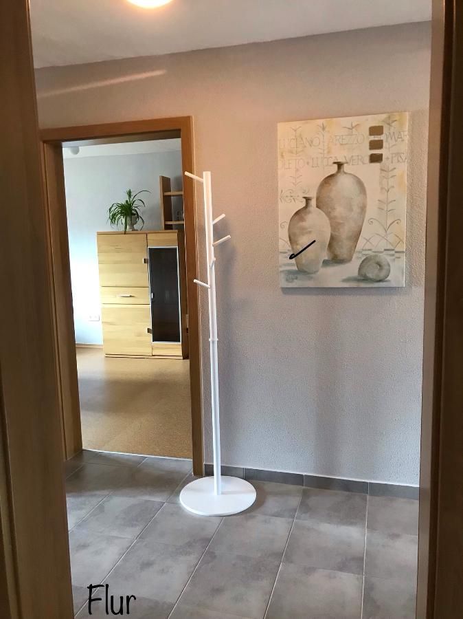 Unsere helle und freundliche Ferienwohnung mit 60qm liegt im Obergeschoss und ist maximal für 3 Personen buchbar. Zwei Gäste finden im Schlafzimmer erholsamen Schlaf – es ist mit einem Doppelbett, Fernseher und Schrank ausgestattet. Der dritte und vierte Gast (meistens ein Kind) kann auf der bequemen Schlafcouch mit Matratze im Wohnzimmer schlafen. Im Wohnzimmer befidnet sich ebenfalls ein Fernseher. Die Küche kann mit einer Spülmaschine, einem Herd mit Abzugshaube, einem Backofen und Esstisch aufwarten. Im Badezimmer finden unsere Gäste eine Dusche und eine Waschmaschine. Das WC ist separat. WLAN ist kostenfrei.