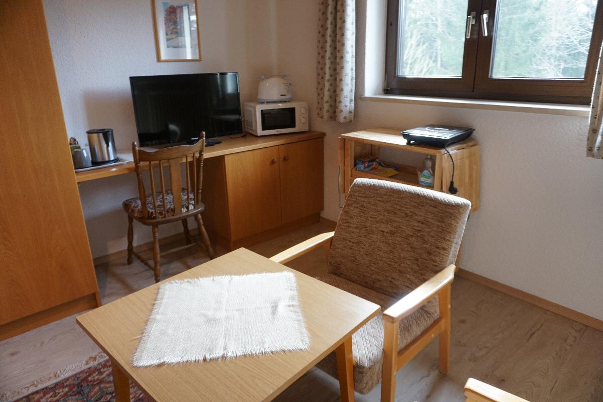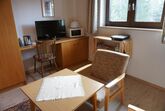 Das Appartement verfügt über einen Balkon, Kochgelegenheit mit Kochplatte, Mikrowelle, Senseo-Kaffeemaschinen, Wasserkocher und einem Kühlschrank. Zum Haus gehört ein rustikal eingerichteter Aufenthaltsraum, ein Fernsehzimmer, eine große Liegewiese, eine Sonnenterrasse, Tischtennis, Garagen, Parkplätze. Ein reichhaltiges Frühstücksbuffet gehört zu den Annehmlichkeiten unseres Hauses. Alle Zimmer sind mit SatTV ausgestattet.