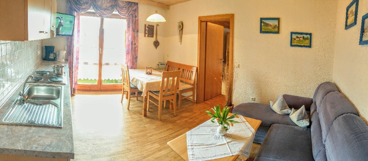 Die Ferienwohnung Platzhirsch ist eine gemütliche, komfortabel eingerichtete Ferienwohnung mit zwei Schlafzimmern, mit Balkon oder Terrasse für 2-5 Personen. Die Wohnung ist mit einer komplett eingerichteten Küchenzeile mit Kühlschrank, Backofen, 4-Platten-Herd, Wasserkocher, Kaffemaschine, Essgruppe, Wohnecke, Sat-TV, Radio, W-LAN, Dusche/WC, Haartrockner und zwei Schlafzimmern ausgestattet.Handtücher und Bettwäsche werden gestellt.