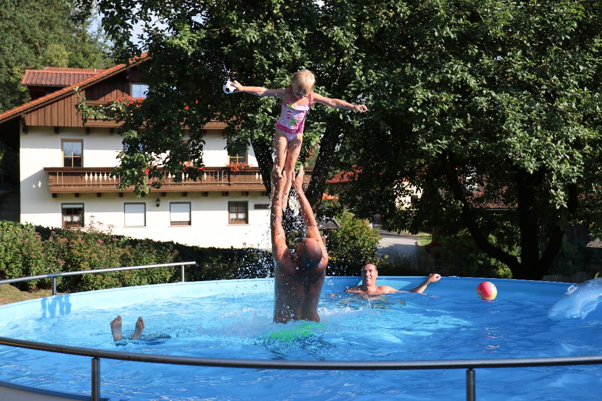 Ferienhof Wolf - Ferienwohnungen : Unser familienfreundlicher Ferienhof mit gemütlichen, komfortablen Ferienwohnungen ist Ihr ideales Urlaubsziel auf der Sonnenseite des Arbers. Ein gemütlicher Nichtraucher-Aufenthaltsraum, der Swimming-Pool, die Liegewiese, Grillabende laden zum Verweilen ein.