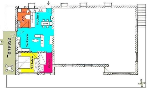 Die Ferienwohnung ist nahe zu Barrierefrei und ebenerdig, der Parkplatz ist direkt neben der Terrasse der Ferienwohnung.