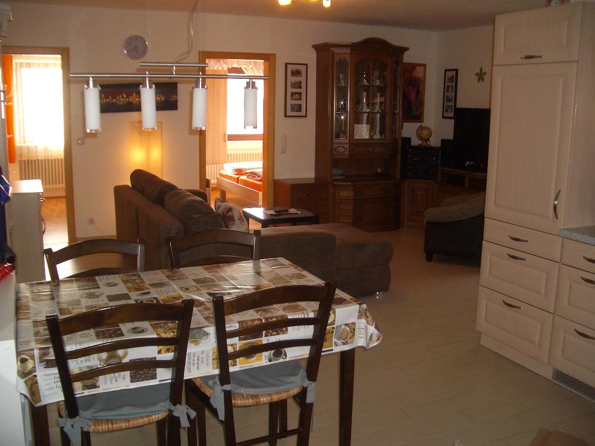 Wohnzimmer und Küche mit Esstisch Garnitur u. Garderobe: