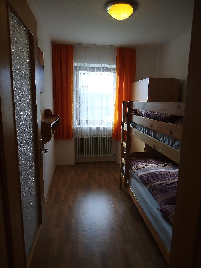 Im Kinderzimmer steht ein 90cm x 2m Etagenbett (Kiefer) mit Nachtlampen, 2-Türiger Kleiderschrank, kleines Regal an der Wand Kleiderständer, freie Steckdosen usw.
