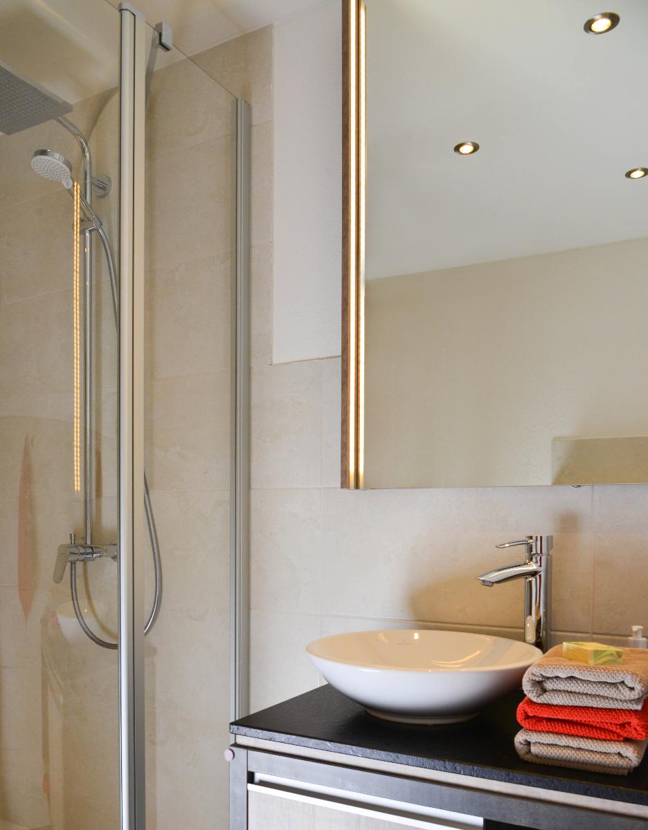 Jede Wohnung bietet in ihrer einzigartigen niveauvollen Gestaltung für jeden Geschmack eine individuelle Wahlmöglichkeit. Die hauseigene Sauna mit Sanarium, Aquaviva und Farblicht sorgt für entspannte Stunden zum Ende eines schönen Urlaubstages.