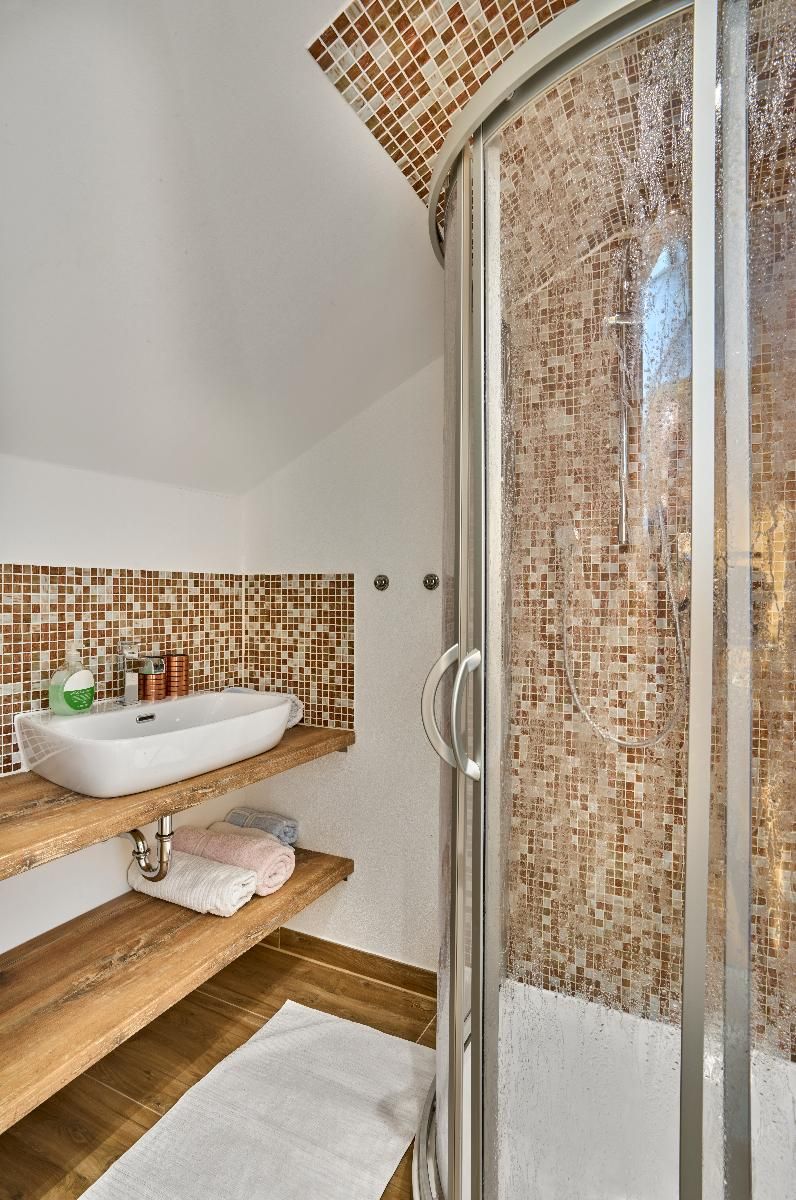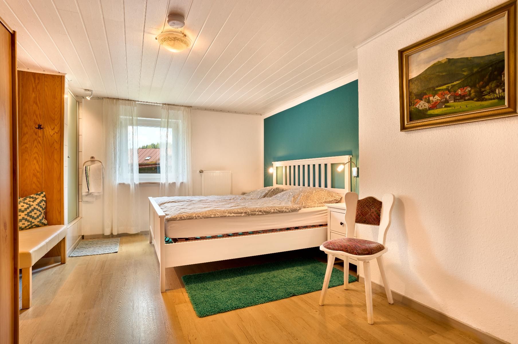- geräumiges Schlafzimmer mit Dusche und getrenntem WC, Fön