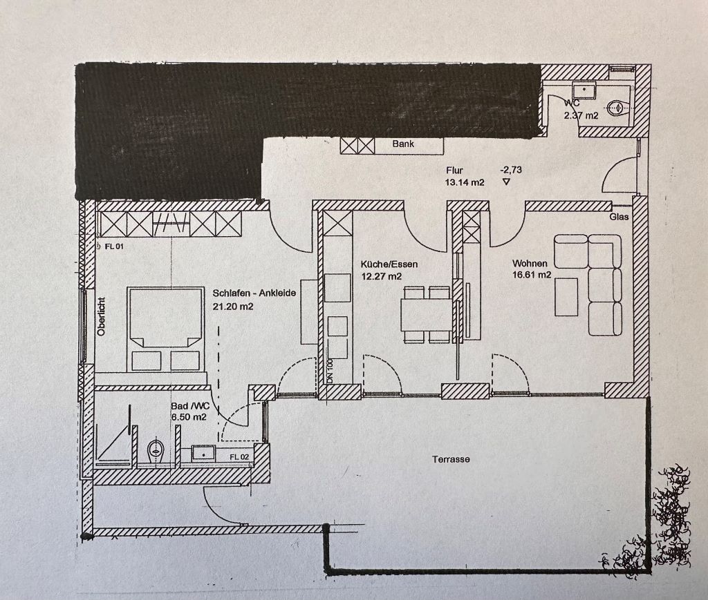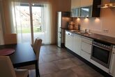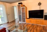 Im Wohnzimmer steht für Sie eine große Eckcouch zur Verfügung. Gegenüber befindet sich ein Full-HD LCD 65 Zoll TV und eine Stereoanlage. Das Wohnzimmer ist mit einer Durchgangstüre zur Küche verbunden. Wie in der Küche und im Schlafzimmer befinden sich auch hier bodentiefe Fenster, welche Ihnen viel Helligkeit und direkten Zugang zur Terrasse bieten.
