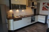 Die Küche ist neben dem Essbereich mit einer modernen Einbauküche ausgestattet. Ausreichend Geschirr, Besteck und Töpfe sowie eine Geschirrspülmaschine und eine große Kühlgefrierkombination sind vorhanden. Kaffeemaschine, Wasser- und Eierkocher sind ebenfalls vorhanden.