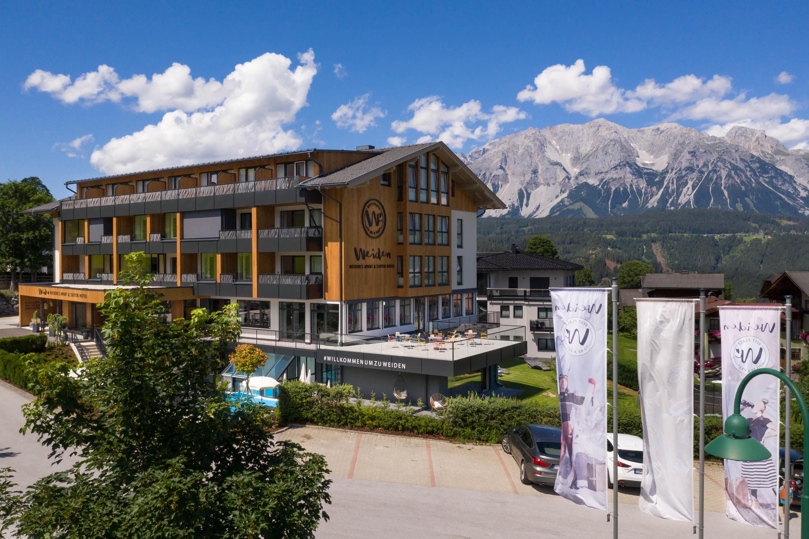Das Hotel WEIDEN mit Wohnzimmerfeeling und innovativem Konzept hat erstklassige Lage am Hochplateau Rohrmoos oberhalb von Schladming. Im Skiurlaub direkt neben der Skipiste, im Sommerurlaub mitten in der Wanderregion Schladming Dachstein.