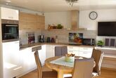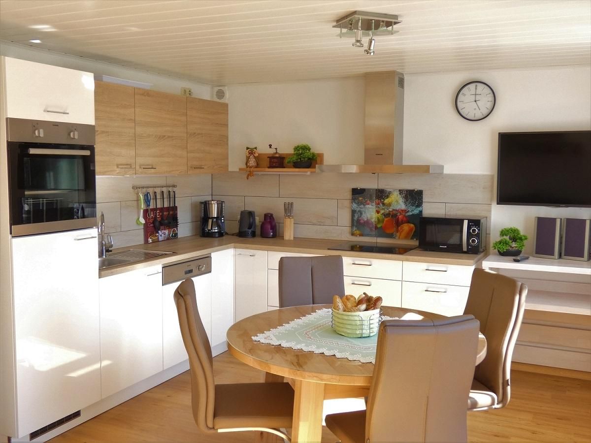Couchgruppe, Flachbildfernseher( Sat-Anschluss u. WLAN-Internet) lädt zum Verweilen ein. In der gut ausgestatteten neuen Küche können Sie sich kulinarisch entfalten. Die