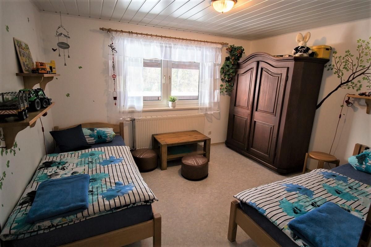 Schlafzimmer mit zwei Einzelbetten. Auf Wunsch kann ein Kinderbett