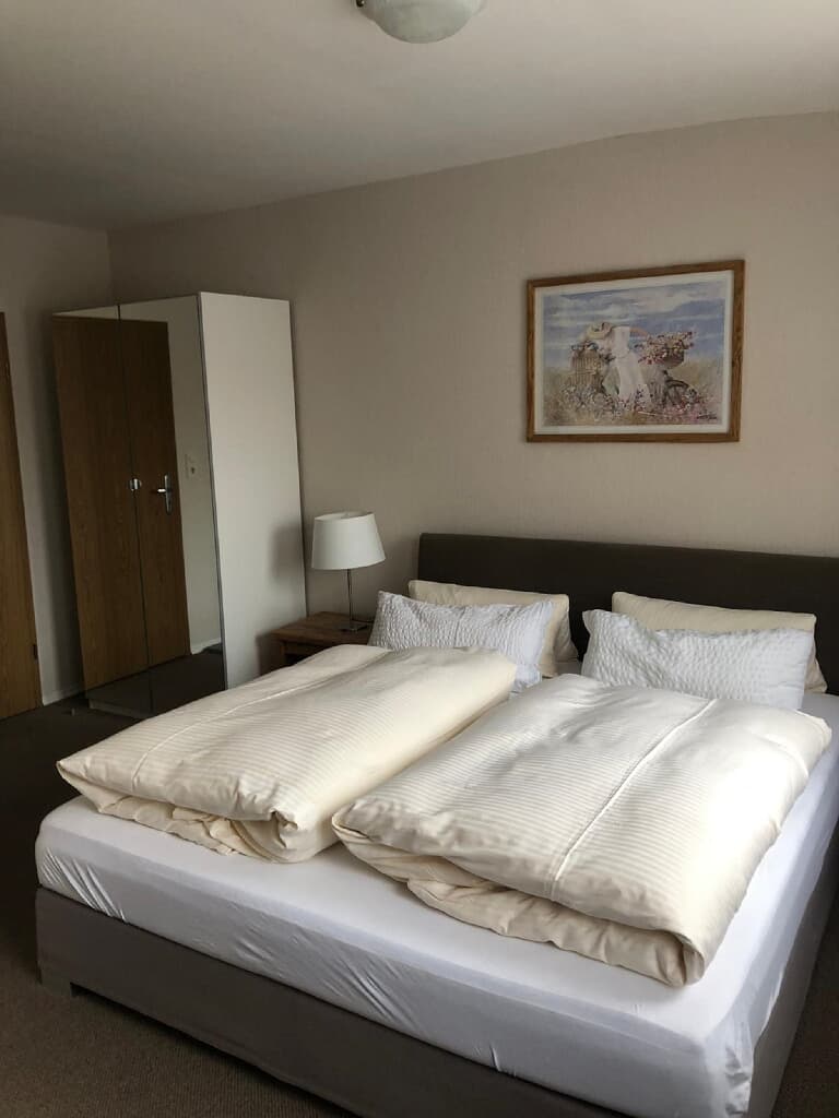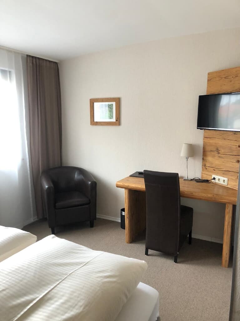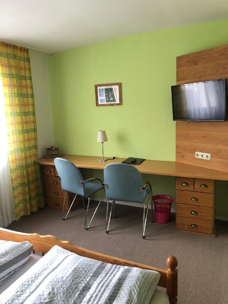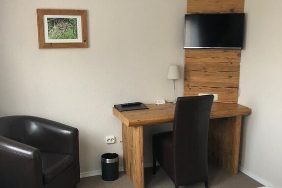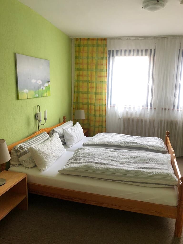 Unsere gemütlichen Doppelzimmer verfügen alle über ein Doppelbett (Trennung möglich), einen Schreibtisch mit Sitzgelegenheit, Gemeinschaftsbalkon, einen Fernseher und WLAN im Zimmer. Wir legen im Bad frische Handtücher und Bademäntel für Sie zurecht, die Sie gerne für den Aufenthalt in unserer Sauna benutzen können. Ein Parkplatz ist im Zimmerpreis inbegriffen.