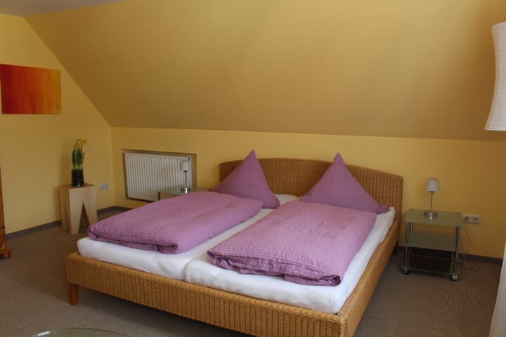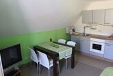 Unsere kleine Ferienwohnung ist am besten geeignet für 1-3 Personen und besteht aus einem Schlafzimmer mit Doppelbett; einer Wohnküche mit Sitzecke,Ofen,Kühlschrank, Mikrowelle, Kaffeemaschine und Kochausstattung; und einem Bad mit Dusche, WC und Bademantel. Sie dürfen gerne unsere Sauna, den Pool und den Fitnessraum benutzen.