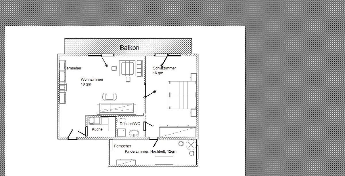 Die Ferienwohnung Eule ist ca. 45 qm groß und befindet sich ebenerdig zum Haupteingang des Hauses zur Südseite.