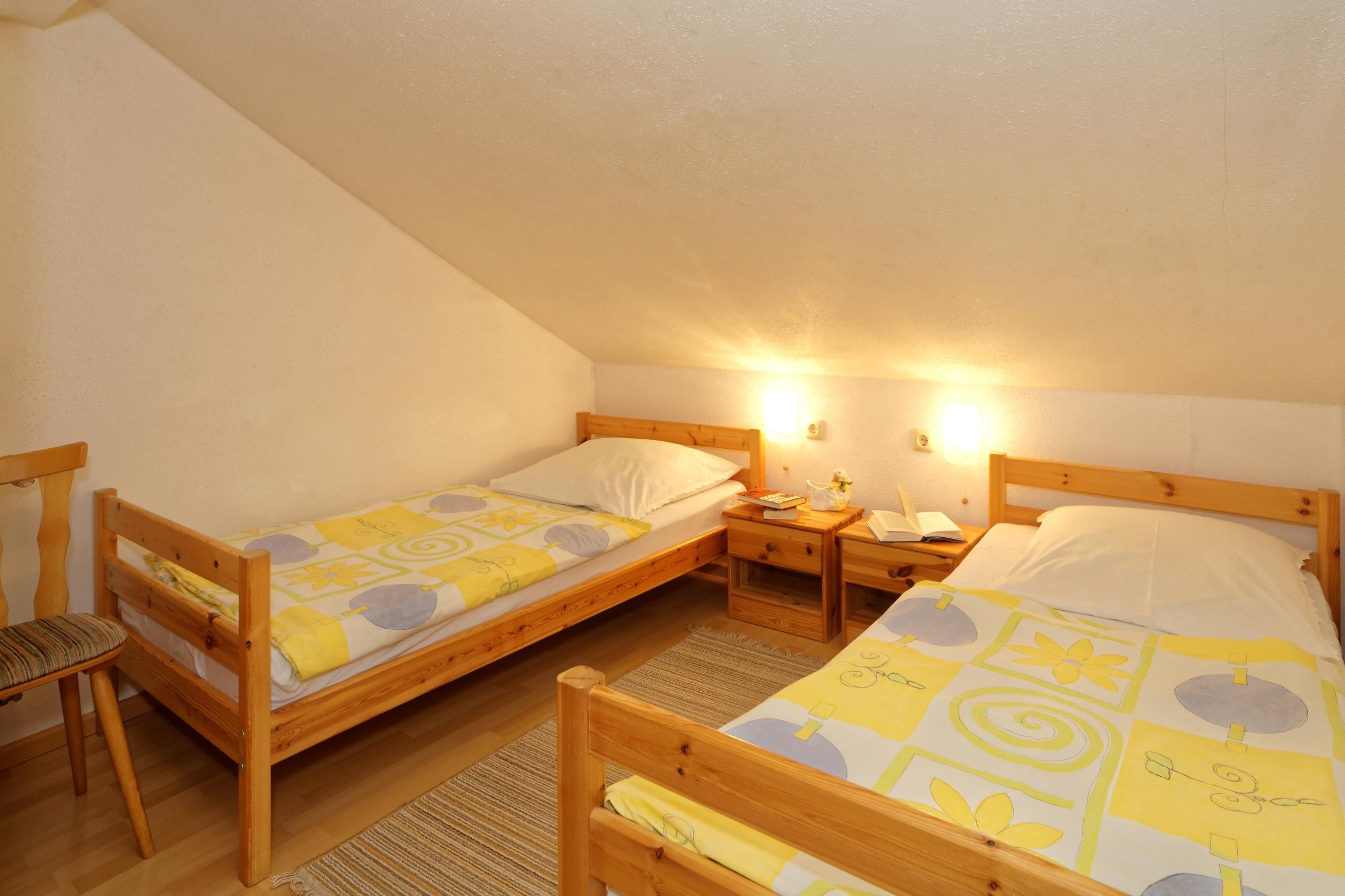 Unsere Ferienwohnungen für 4 Personen bestehen aus einem Doppelzimmer und einem Kinderzimmer mit Schlafmöglichkeit für 2 Personen. Eine Küchenzeile (4 Platten, Backofen, Kühlschrank, Kaffeemaschine, Wasserkocher, Toaster), gemütlicher Wohnbereich mit Sitzgruppe, Eßplatz, Fernseher, Dusche, WC, großer separater Balkon. Die einzelnen Bereiche sind durch Türen getrennt.