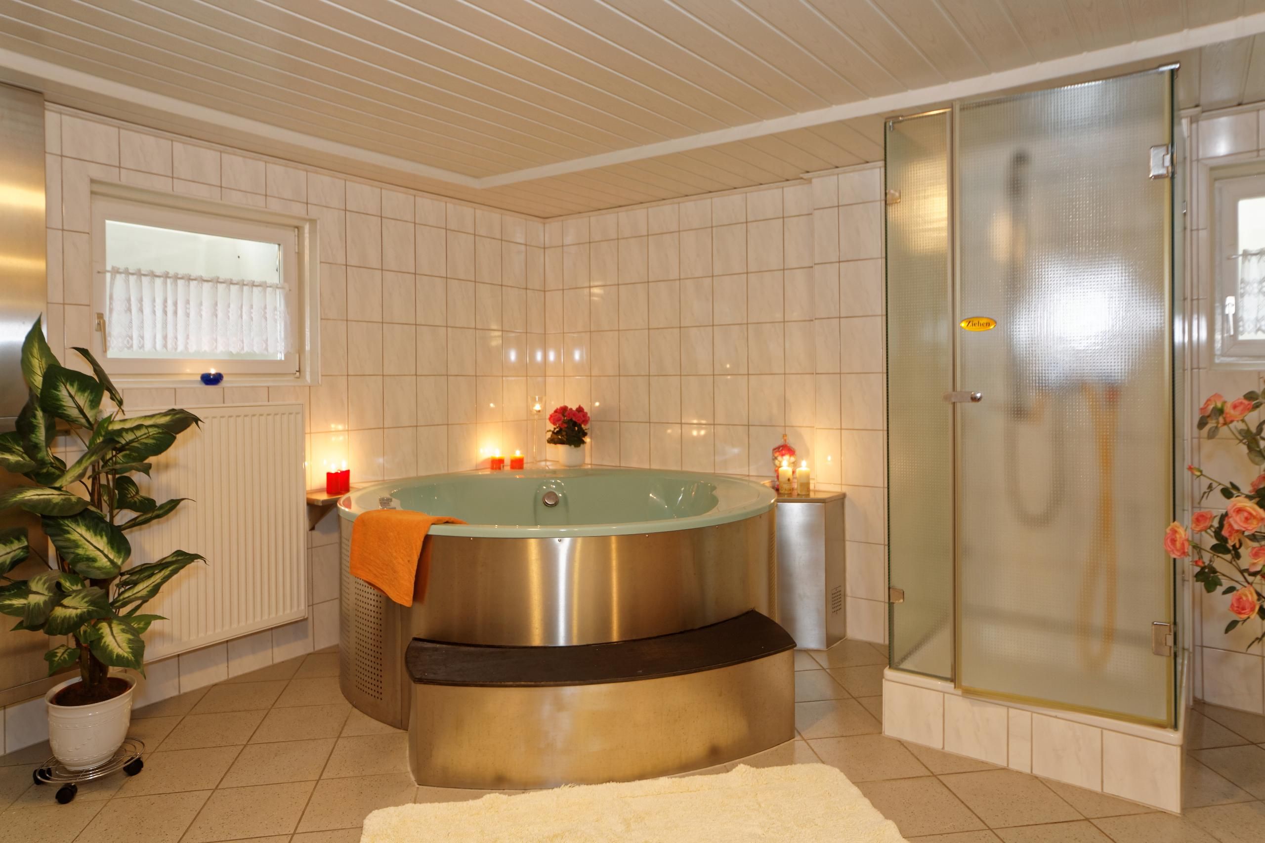 Eine große Liegewiese und ein Kneippbecken laden zum Entspannen ein. In unserem kleinen Wellnessbereich mit Whirlpool, Sauna, Solarium, Fitnessraum und Ruheraum können Sie Ihr Wohlbefinden steigern. Für sportliche Aktivitäten im Freien stehen eine Tischtennisplatte, Bocciabahn und ein Krocketplatz bereit. Zur Freude Ihrer Kinder haben wir auf unserem weiträumigen Grundstück einen Kinderspielplatz, eine Kinderspielscheune und einen Bolzplatz eingerichtet.