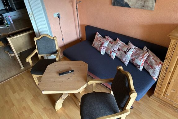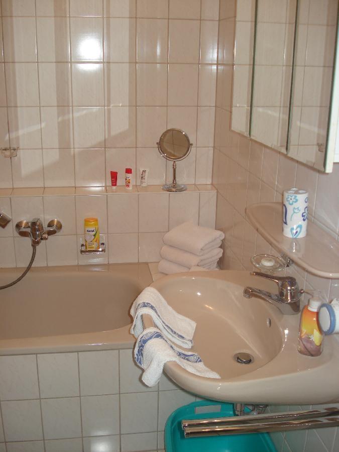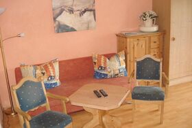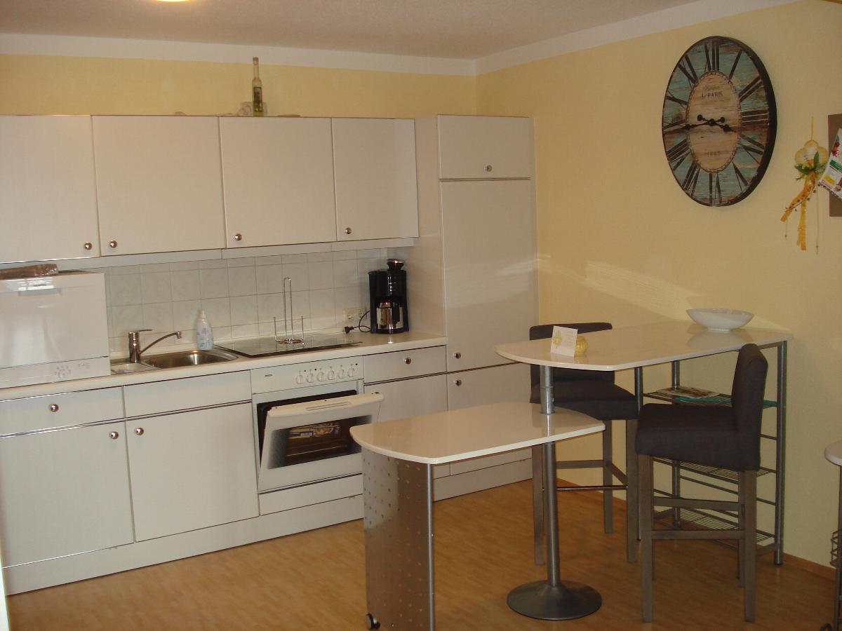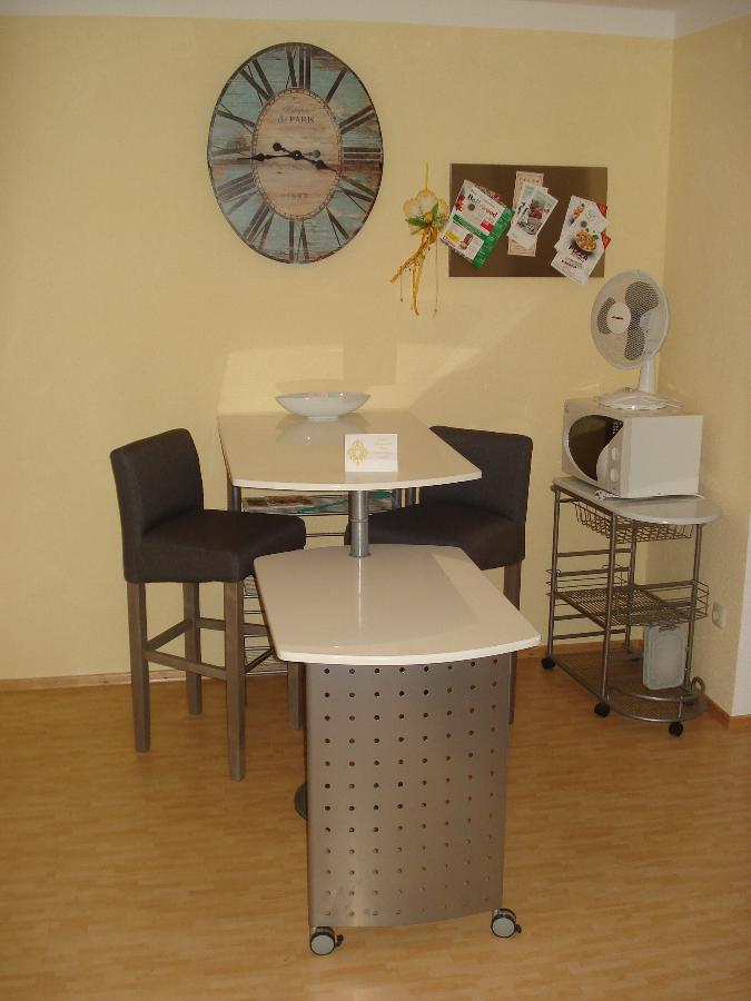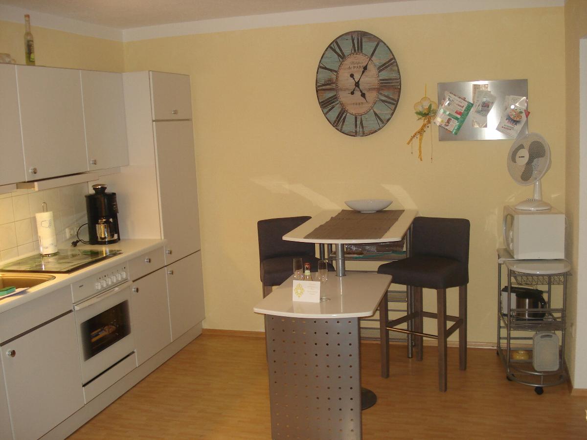 Ihre Ferienwohnung ist mit einer hochwertigen Küche, sowie einer schönen Essgruppe eingerichtet. Dieser Wohn-Küchenbereich kann vom Relax-/Schlafzimmer durch eine Trennwand abgetrennt werden. Dieser Relaxbereich ist liebevoll ausgestattet mit einem LCD/SAT-Fernseher und einem großen Doppelbett (1,80x2,00m) mit Funktionslattenrost. Das schöne Badezimmer verfügt über eine Badewanne mit Duschfunktion und WC sowie Kosmetikspiegel und Fön. Handtücher, Badetücher sowie Bade- und Duschlotion stellen wir unseren Gästen gerne zur Verfügung. Ihre Ferienwohnung ist vollausgestattet mit Hifi-Anlage, Kaffeemaschine, Mikrowelle, Wasserkocher und Toaster. Gerne legen wir für Sie Lesemagazine und eine Touristeninformations-Mappe aus. Außerdem verfügt die Ferienwohnung über einen eigenen Balkon mit Markise und Sitzmöglichkeiten. Ein hauseigener Parkplatz ist direkt vorm Haus verfügbar.