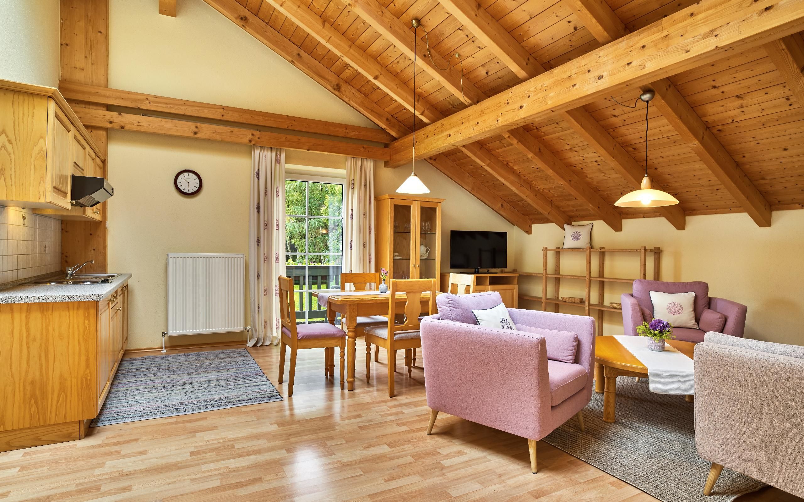 Die allergikerfreundliche Superior-Wohnung mit Infrarotsauna und Relaxbereich hat 74 m² und wurde vom DTV mit 4**** ausgezeichnet. Sie verfügt über ein Schlafzimmer mit Doppelbett sowie einen großen, hellen Wohnraum mit Flat-TV, Internet-Radio, Couch, Sessel und gut ausgestatteter Küchenzeile. Der Ost-Balkon ist über das Wohn- und Schlafzimmer zugänglich.