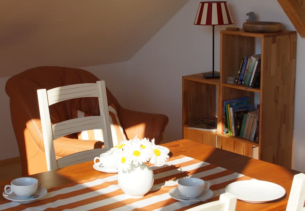 Die gemütliche, hochwertig ausgestattete Ferienwohnung im modernen Landhausstil ist für bis zu 4 Personen ausgelegt. Im schönen Schlafzimmer befindet sich ein bequemes Doppelbett. Der Wohnbereich mit Kaminofen inkl. Brennholz, Leder-Schlafsofa für 2 Personen, SAT-TV, Radio, Esstisch, Couch, Multimediagerät (DVD-Player, USB und SD-Anschluss) und Küche lädt zum Verweilen ein. Die Küchenzeile mit Ceran- Kochfeld, Backofen, Kühlschrank mit Gefrierfach, Kaffeemaschine, Toaster, Wasserkocher und Geschirr lässt keine Wünsche offen. Das Bad besteht aus Badewanne mit Dusche, WC, Waschbecken und Spiegel. Handtücher und Bettwäsche sind inklusive. Das WLAN können Sie kostenlos nutzen. In unserem schönen Garten mit Gartenmöbeln können Sie die Sonne genießen.