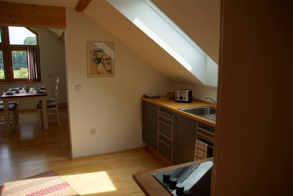 Hochwertig ausgestattete Ferienwohnung im modernen Landhausstil direkt am Naturschutzgebiet Hölle im Vorderen Bayerischen Wald, am Goldsteig und am Regensburger Burgensteig gelegen. 30 min nach Regensburg, bayerischer Wald und Straubing. Die geschmackvolle Atelierwohnung im modernen Landhausstil befindet sich direkt am Eingang zum Naturschutz- gebiet Hölle im ruhigen, idyllischen Ort Postfelden. Die stilvoll möblierte Ferienwohnung verfügt über eine gut ausgestattete Küche, separaten Schlafraum und einen lichtdurchfluteten Atelierraum mit Kaminofen, Sat-TV und WLAN. 30 Minuten nach Regensburg und Straubing.