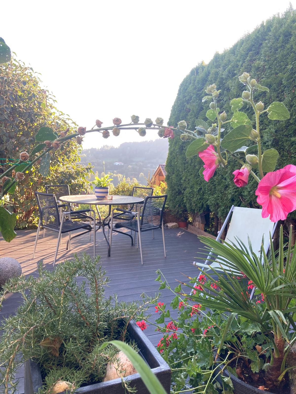 Unsere 5 Sterne Ferienwohnung Paradies ist feinfühlig und charmant eingerichtet. Herrlich gemütlich und bequem mit klarem Stil. Süßes Nichtstun, wundervoller Blütenduft, sanftes Bachplätschern.Schon am frühen Morgen unter freiem Himmel frühstücken.Die ersten Sonnenstrahlen wärmen das Gemüt. Hier fehlt es an nichts. Da bleib ich gleich ein bisschen länger.