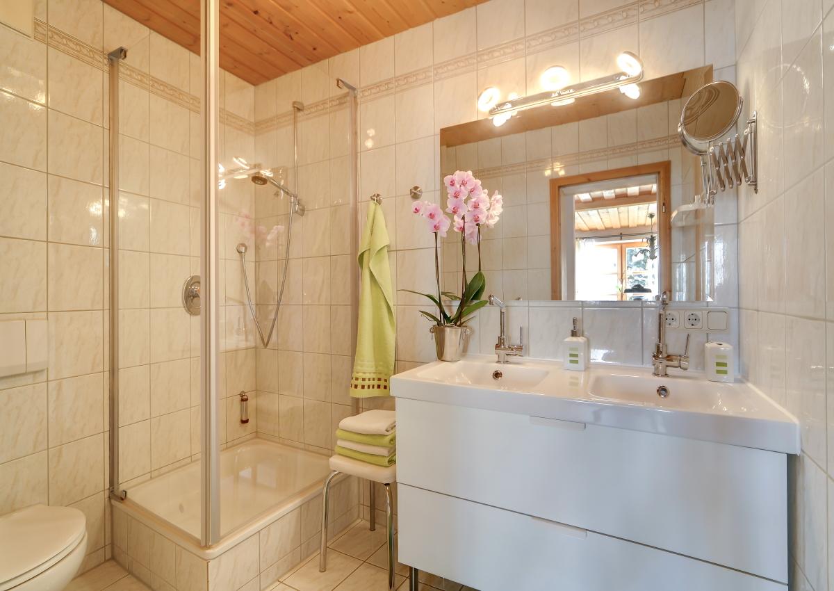 Dusche-WC mit Fußbodenheizung, eigene große Terrasse mit herrlichen Blick auf Bodenmais.