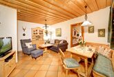 Wohnzimmer mit Sat-TV, zusätzlichem Kaminofen, Küchenzeile, separatem Schlafzimmer mit 2. Fernseher,