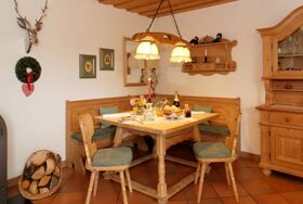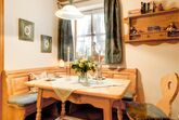 Die Küche ist mit einer kleinen Kochnische mit 2-Platten-Herd und Spülmaschine ausgestattet und mit einer Eckbank gemütlich eingerichtet.