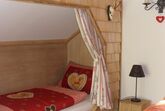 Erwachsenen sowie großem Panoramafenster. Die freigelegten, antiken Holzbalken und