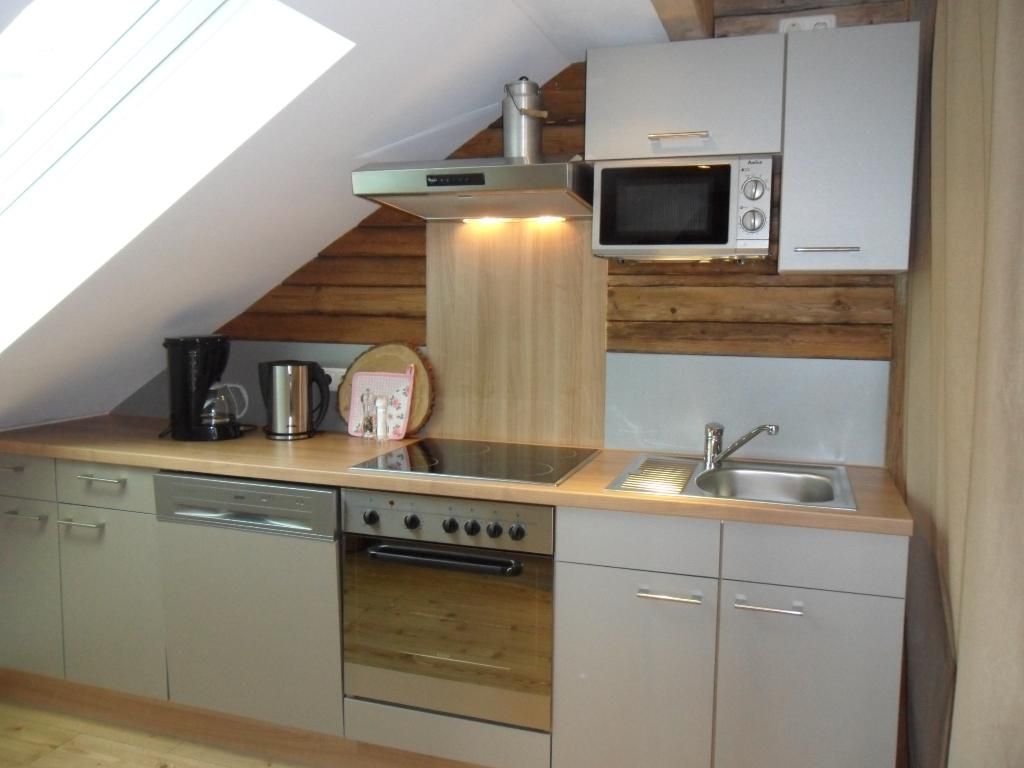 Die exklusive Loftwohnung im Dachgeschoß mit 60 qm Wohnfläche für 2-4 Personen ist sehr großzügig gestaltet mit gemütlichem Essplatz, Schlafbereich mit Doppelbett und Wohnraum mit Alkoven-Bett für 2 Kinder oder 1 Erwachsener, Couch, Sessel und Flachbild-TV mit blu-ray-Player und großem Badezimmer mit Dachfenster, Dusche und WC. Diese Wohnung verfügt ebenfalls über eine komplett ausgestattete Küche und ist über eine Außentreppe separat zugänglich mit kleinem, gemütlichem Balkon mit Klapptisch und Stühlen.