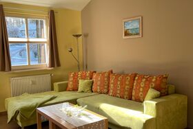 Die Wohnung verfügt über ein helles Wohnzimmer mit einer bequemen Schlafcouch, Flachbild-Sat-TV, Radio sowie einer kleinen Auswahl an Spielen und Büchern – perfekt für entspannte Abende nach einem erlebnisreichen Tag in der Natur. Kostenloses WLAN steht selbstverständlich zur Verfügung.