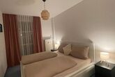 Im Schlafzimmer sorgt ein großzügiges Doppelbett (180 cm) für erholsamen Schlaf, und vom direkten Zugang auf den großen, überdachten Balkon genießen Sie den Blick ins Grüne. Hier lässt es sich wunderbar frühstücken oder den Abend gemütlich ausklingen lassen – auf Wunsch auch mit dem elektrischen Grill, der für den Balkon bereitsteht.