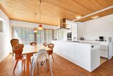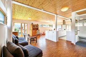 Das Erdgeschoss besteht aus einem großen Wohn- und Essraum und einer offenen Küche mit Kochinsel der Firma Bulthaup. Sie ist mit Backofen, Herd, Kühlschrank, Toaster, Wasserkocher, Kaffeemaschine und Geschirr ausgestattet und lässt keine Wünsch offen. Im Obergeschoss befinden sich die 3 Schlafzimmer für insgesamt 6 Personen und ein Badezimmer. In zwei Schlafzimmern befindet sich jeweils ein Doppelbett. Im dritten Schlafzimmer stehen zwei Einzelbetten.