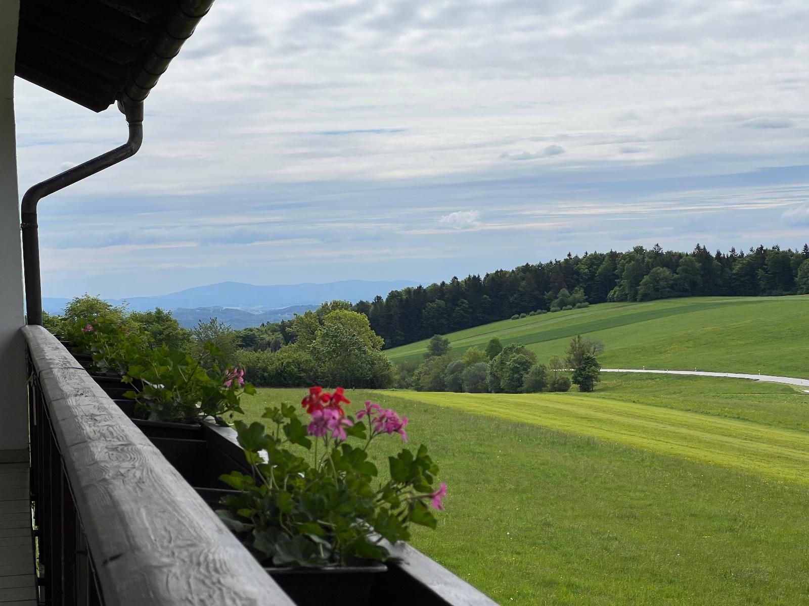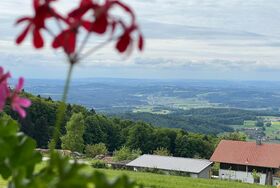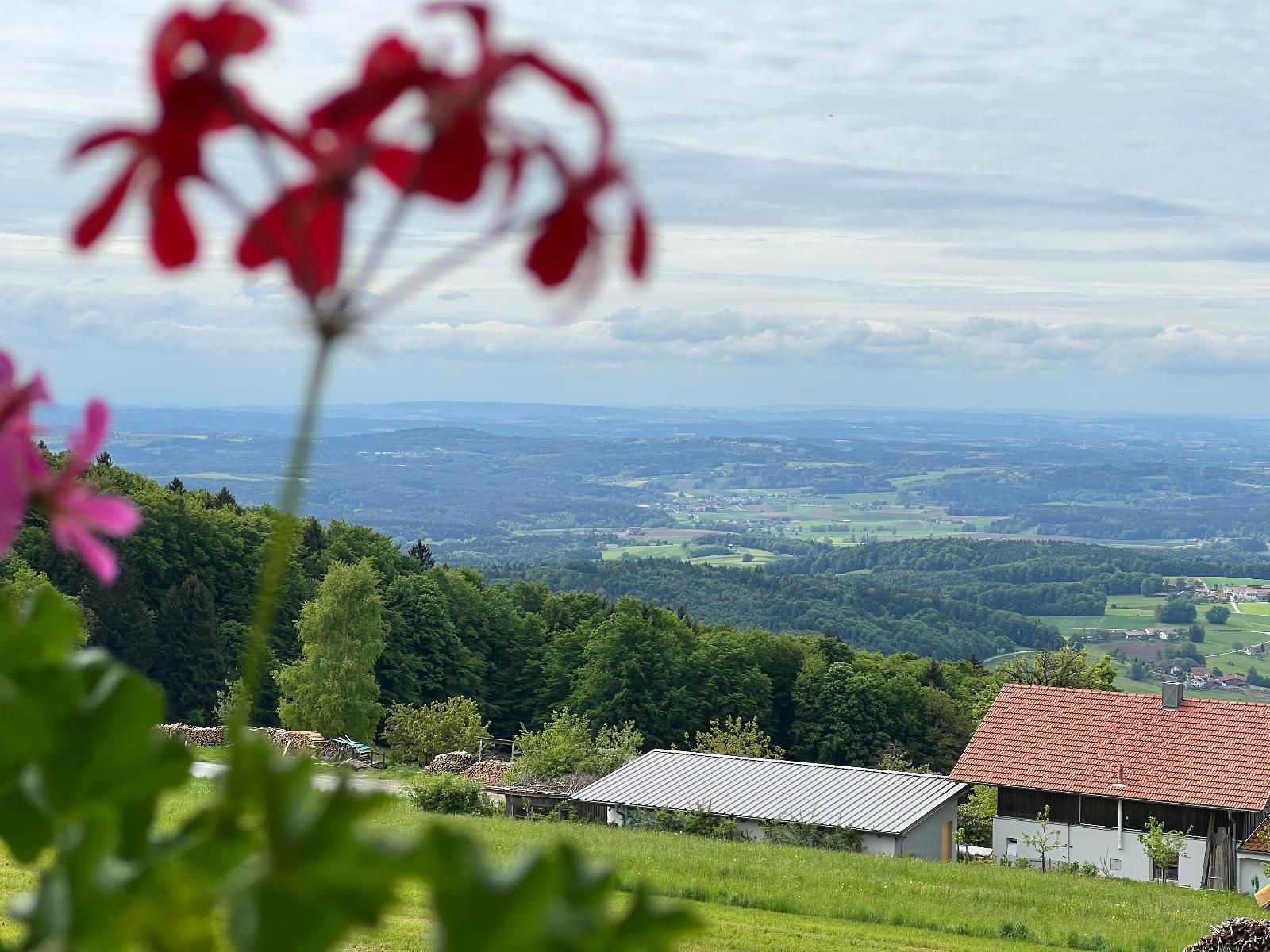 Südhanglage (800 m) mit einzigartigem Panoramablick. Unsere Zimmer sind