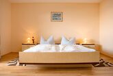Das Dreibettzimmer mit 25m² verfügt über ein Einzelbett, Doppelbett und einer Schlafcouch. Am Balkon, zu dem Sie diekten Zugang haben, können Sie die schöne Aussicht genießen. Das Badezimmer mit Dusche und WC rundet das Gesamtbild ab.