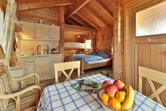 Das Blockhaus ist mit Bad/Dusche/WC, Doppelbett, einem Stockbett, kleine Küche und TV ausgestattet. Im Wohnbereich läd ein Tisch mit Eckbank und Stühlen zum Enstpannen ein. Der Eingangsbereich ist überdacht und kann als Frühstücksbereich in der Morgensonne genutzt werden. Das Blockhaus befindet sich am Südhang mit Blick auf den Luftkurort Hauzenberg und das Staffelbachtal.