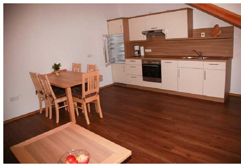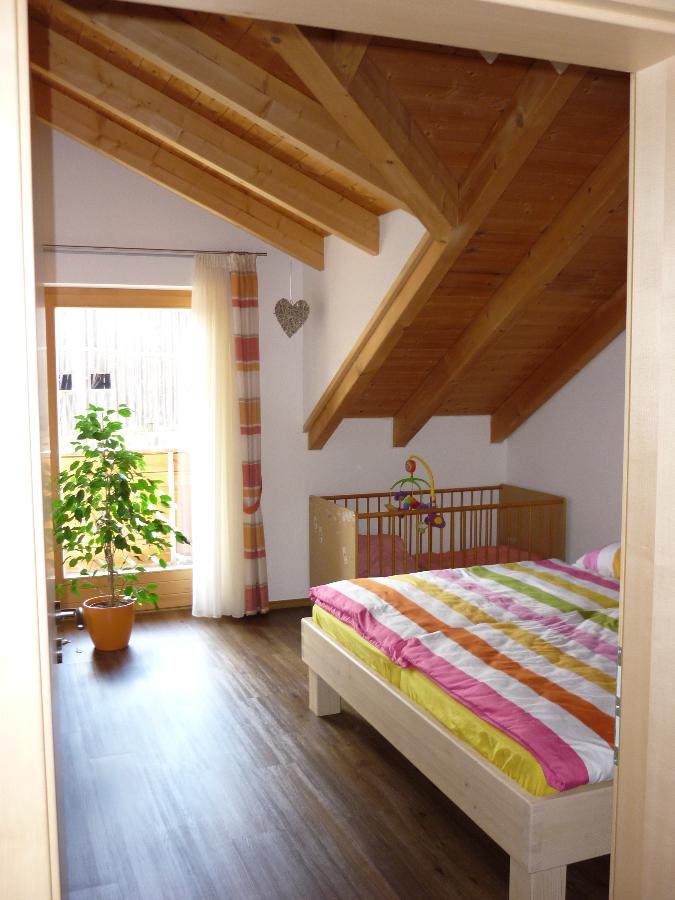 Unsere gemütliche Ferienwohnung mit 65 qm Wohnfläche im Dachgeschoss bietet Platz für bis zu 5 Personen. Das Wohnzimmer mit Satelliten-TV und Schlafsofa lädt zum Verweilen ein. Die komplett ausgestattete Küche mit Geschirrspüler, Kühlschrank, Herd, Backofen, Teekocher und Kaffeemaschine lässt keine Wünsche offen. Die Ferienwohnung verfügt über 2 getrennte Schlafzimmer, ein Doppel- und ein Etagenbett sowie ein Kinderbett mit Zugang zum Balkon. Das geräumige Badezimmer mit Dusche und Handtuchtrockner rundet das Gesamtbild ab. Vor allem im Sommer können Sie enstpannte Grillabende in unserem Garten verbringen. Bitte beachten Sie, dass keine Haustiere erlaubt sind. Das WLAN und den Parkplatz vor dem Haus können Sie kostenfrei nutzen.