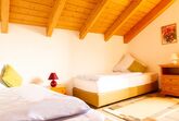 mit Doppelbett und ein Schlafzimmer mit zwei Einzelbetten.