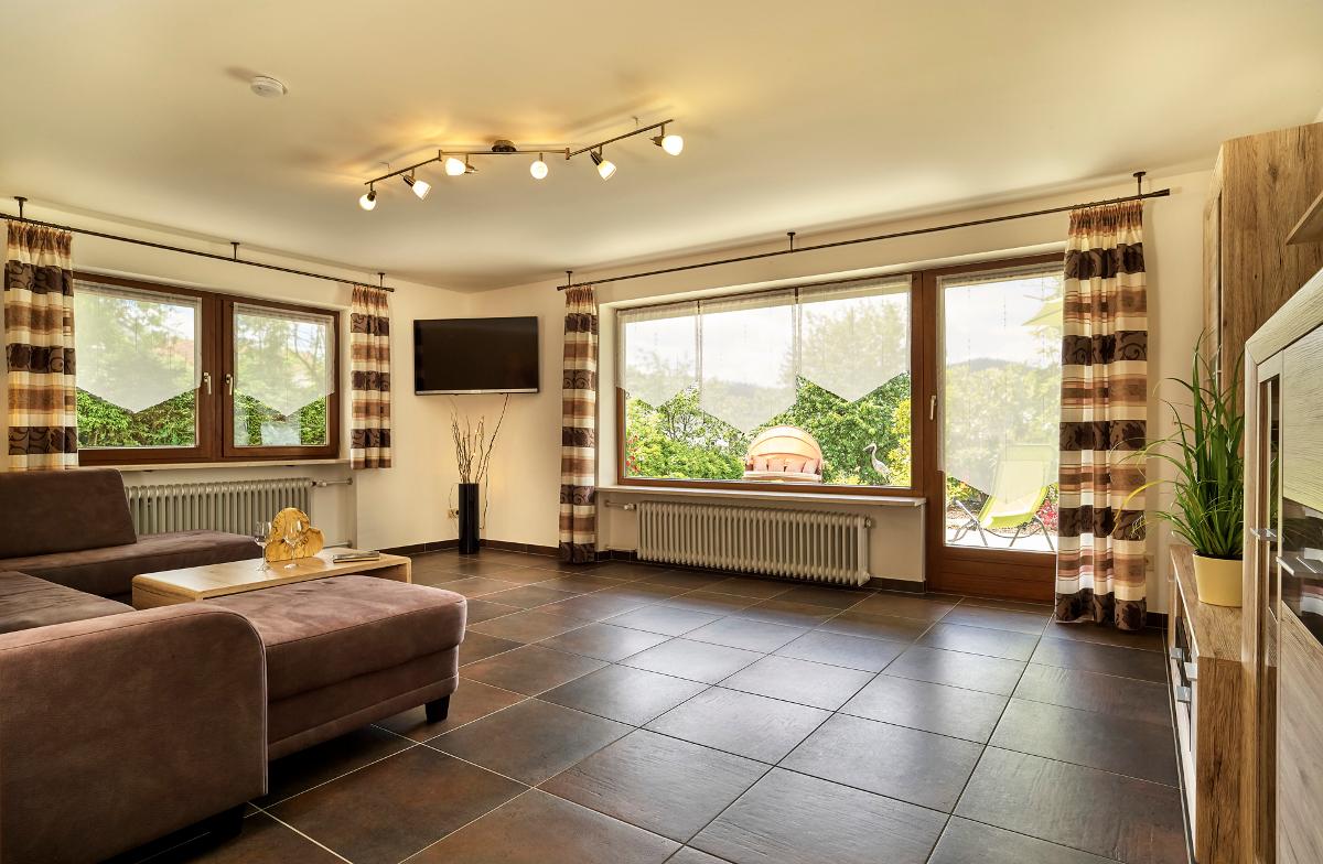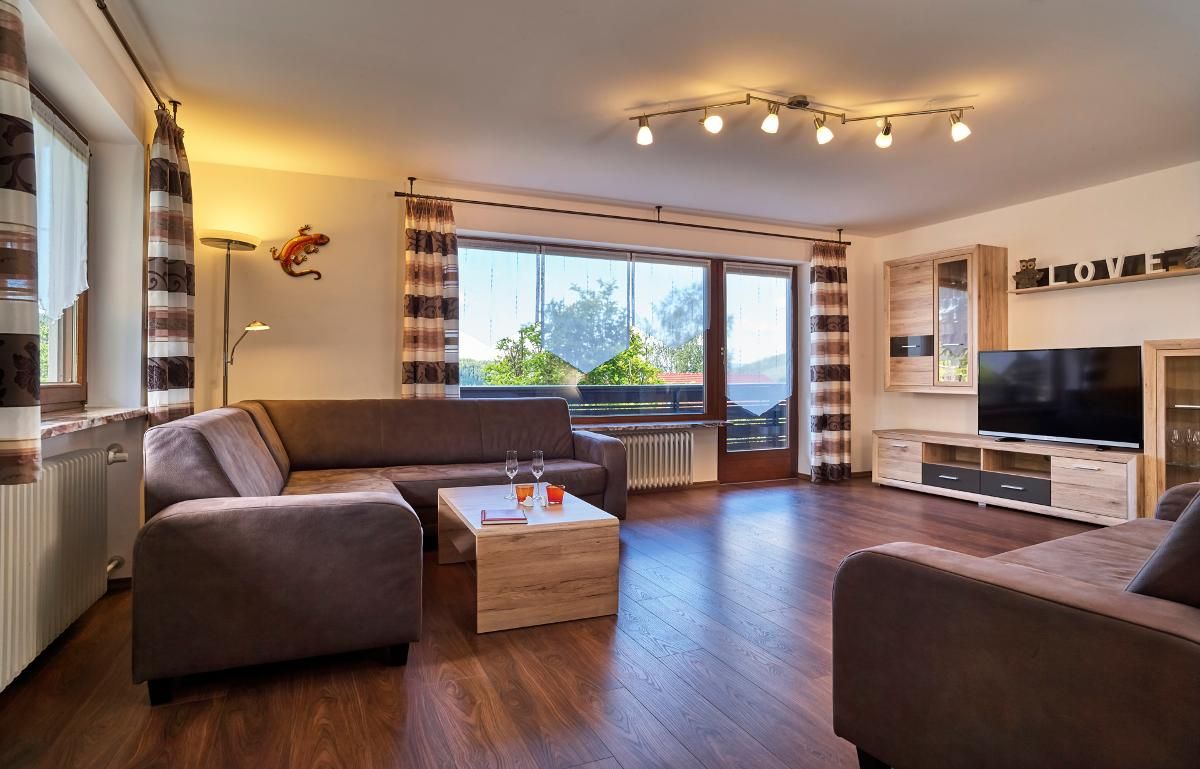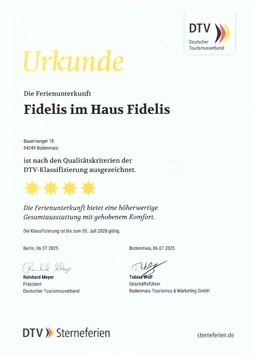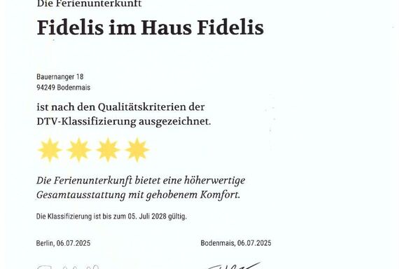 Unsere Ferienwohnung Fidelis wurde im Sommer 2015 zuletzt von Grund auf renoviert. Sie befindet sich im Erdgeschoß bzw. da es ein Hanghaus ist, dürfen Sie sich in den Schlafräumen und dem Wohnzimmer über einen großen Balkon freuen. Zur Küche hin steht Ihnen eine großzügige Terrasse zur Verfügung. Im Dezember 2021 wurde die Wohnung erneut mit 4 Sternen vom DTV klassifiziert.. Die Wohnfläche beträgt ca. 120 qm und bietet somit schöne großzügige Räume auf einer Etage.